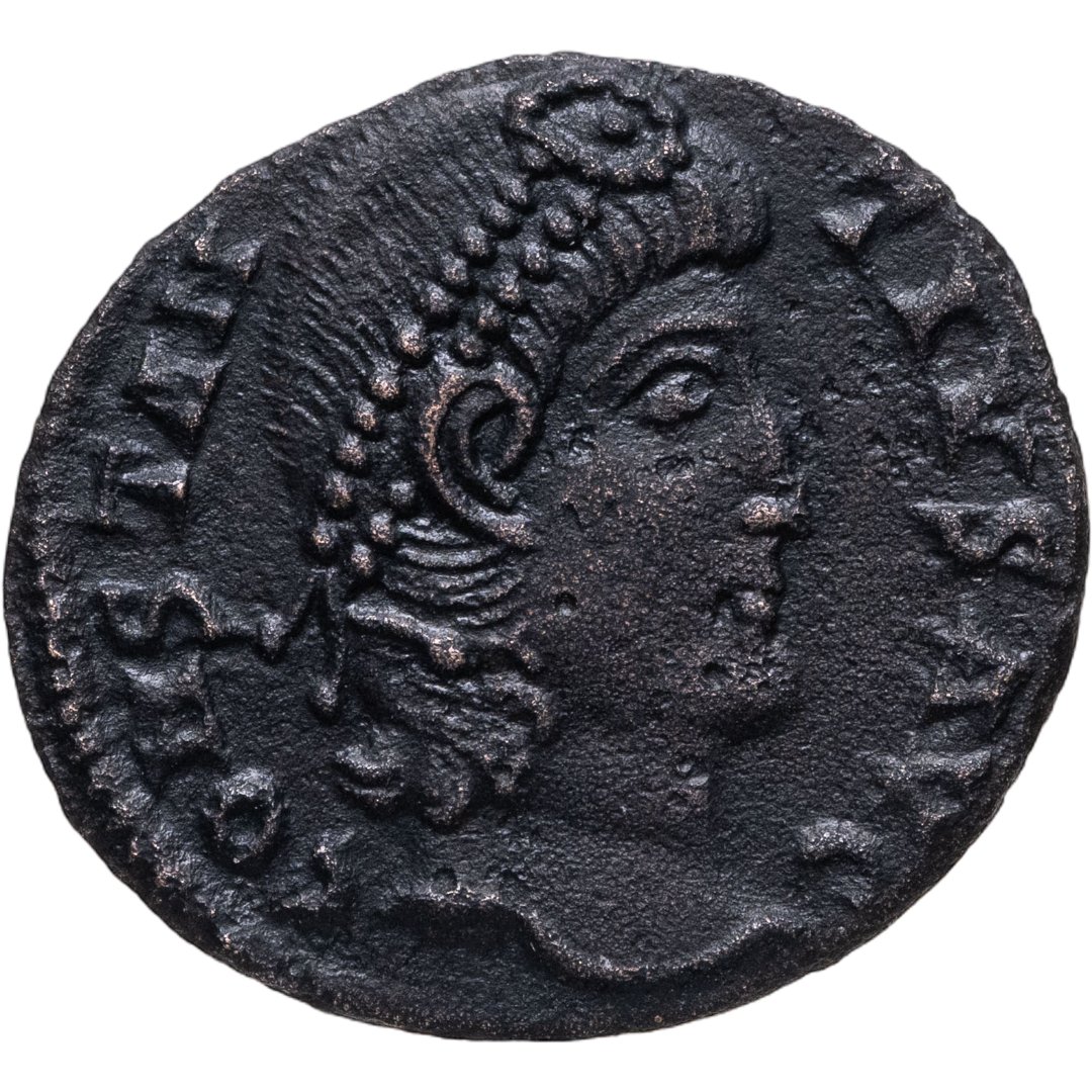 Аверс: D N CONSTANTIVS P F AVG, драпированный бюст императора, повернутый вправо