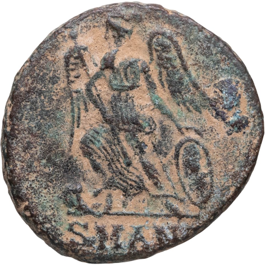 Реверс: крылатая Виктория с копьем и щитом стоит на корме галеры; снизу SMАNI