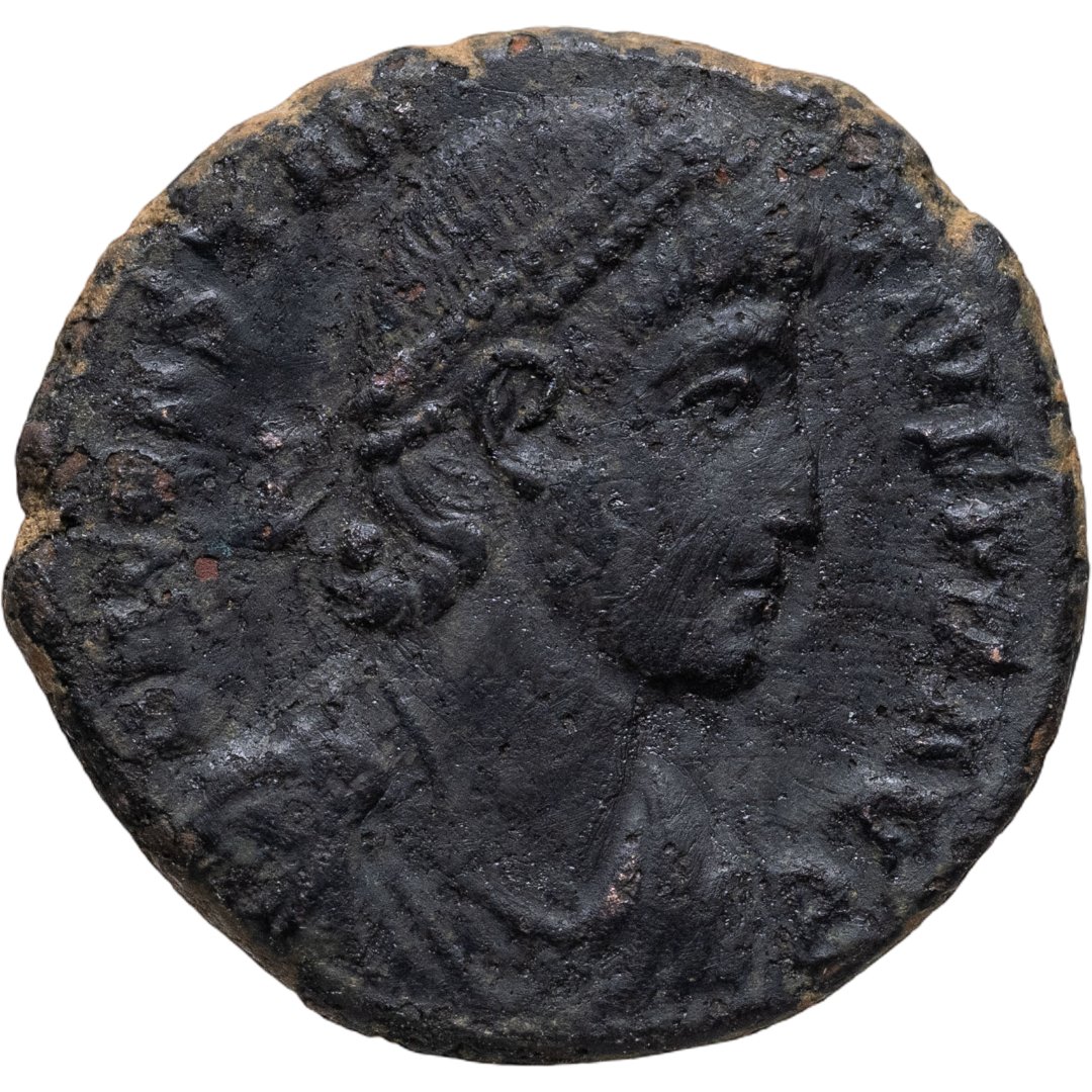 Аверс: D N CONSTANTIVS P F AVG; драпированный бюст императора в жемчужной диадеме, повернутый вправо