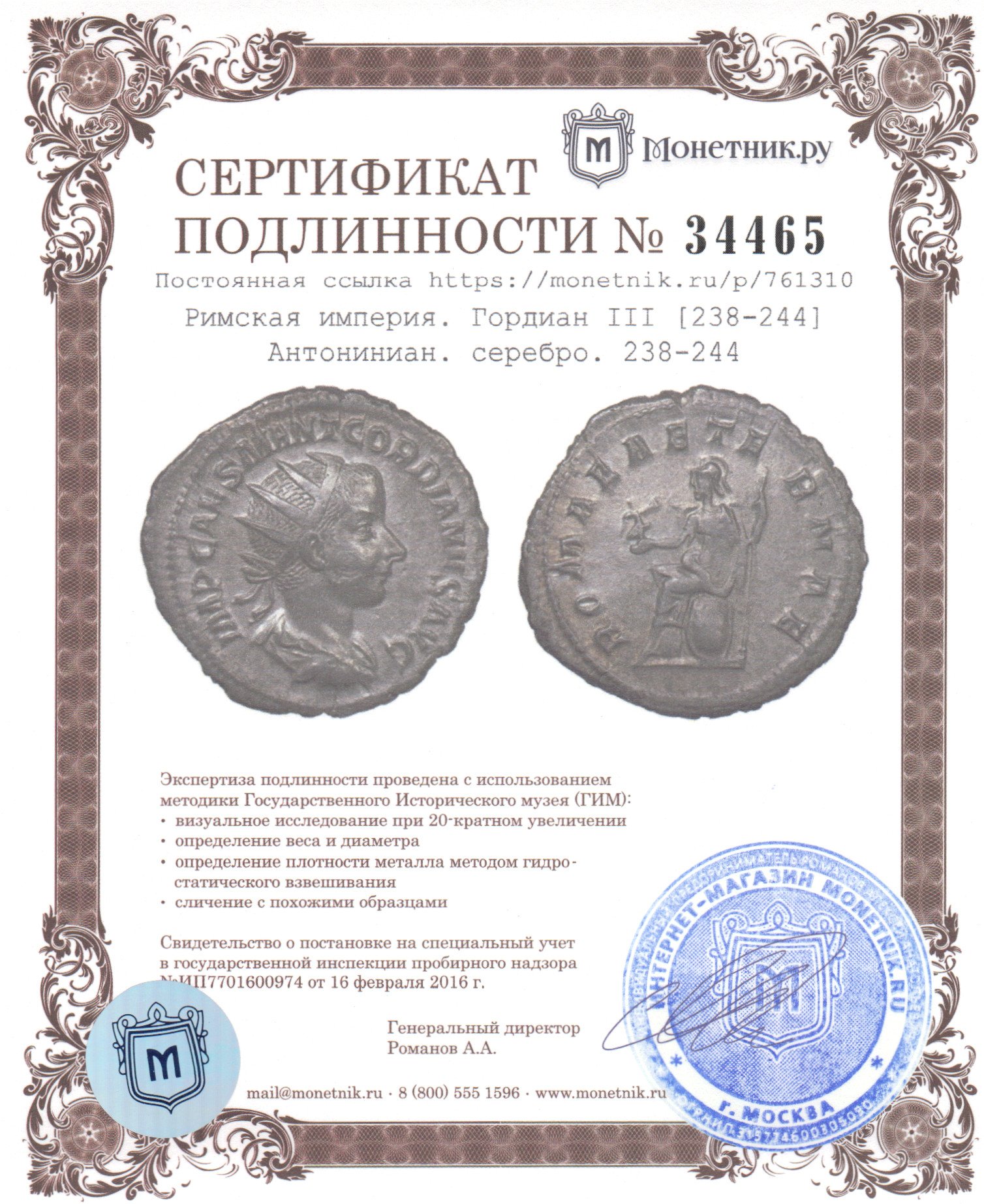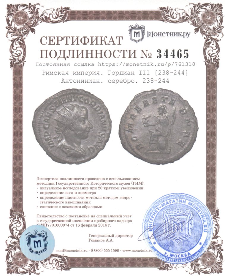 Правитель: Гордиан III [Marcus Antonius Gordianus Pius] (238-244)