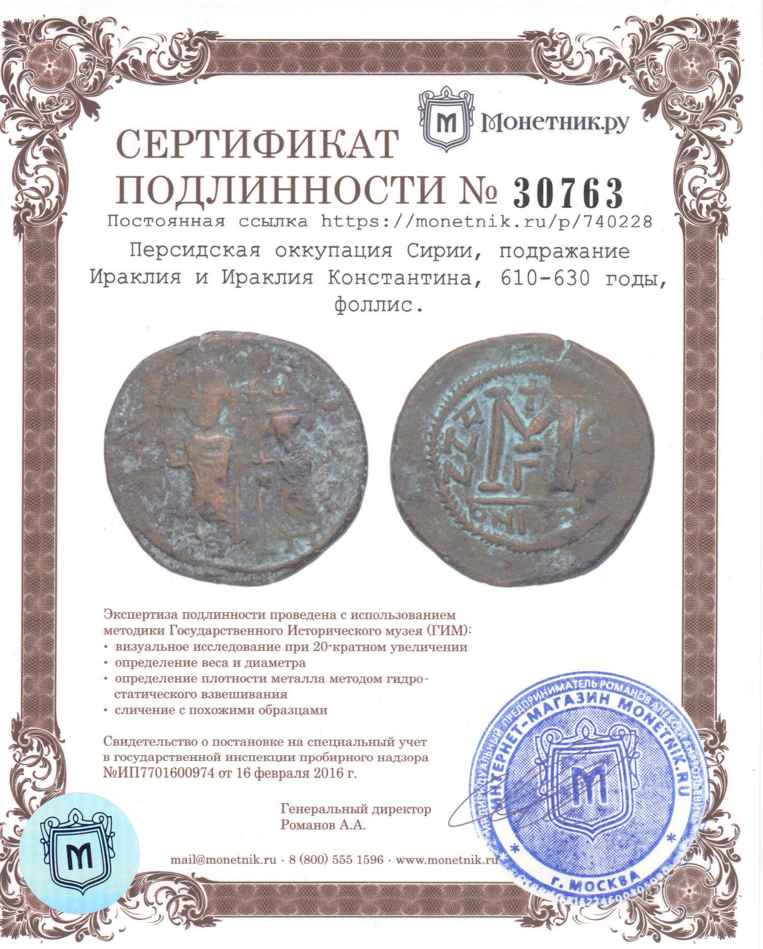 Антиохия была завоевана персидскими войсками в октябре 610 г. и удерживалась там почти 19 лет, до лета 629 г. Монеты чеканились на установленном ими монетном дворе, предположительно в Антиохии (Феополь), имитируя современные византийские медные монеты, в основном это были монеты Ираклия и Константина. , но также и некоторые более ранние типы Юстина II и Софии, Маврикия Тиберия и Фокы. На них указаны годы, которые, как считается, представляют годы Ираклия, но, несомненно, это были скудные попытки указать «год», поскольку широко распространенные совпадения кубиков доказывают, что «годы» совершенно неточны.