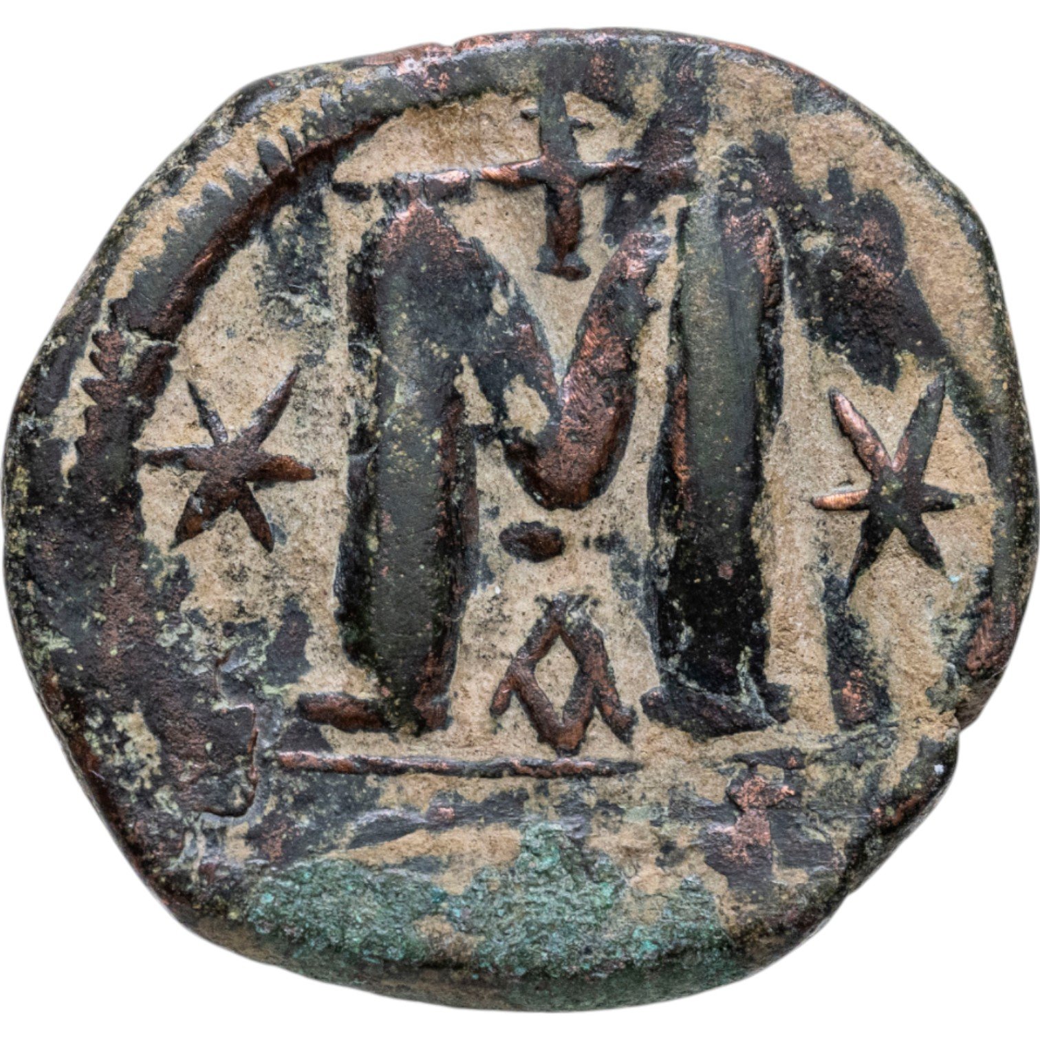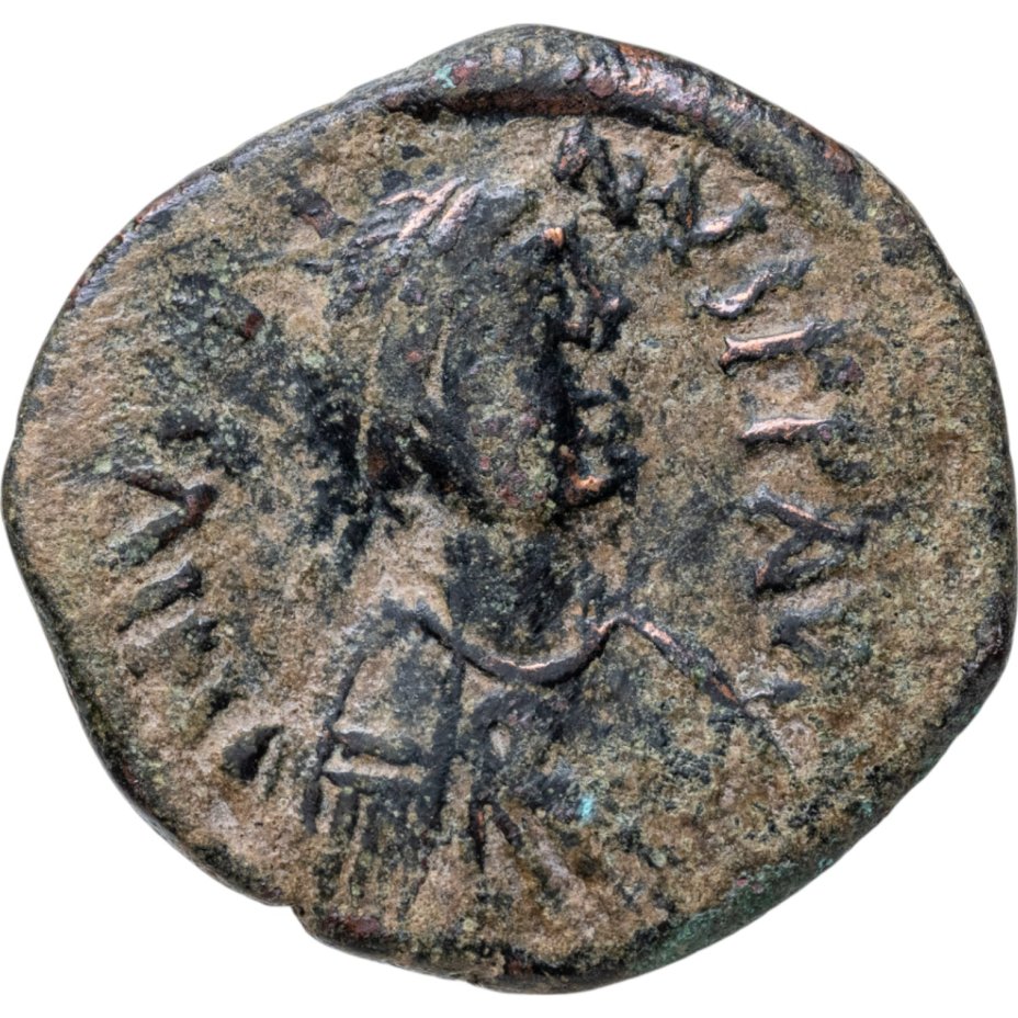 Аверс: DN IVSTINIANVS P P AVC, драпированный бюст императора в диадеме, повернутый вправо.