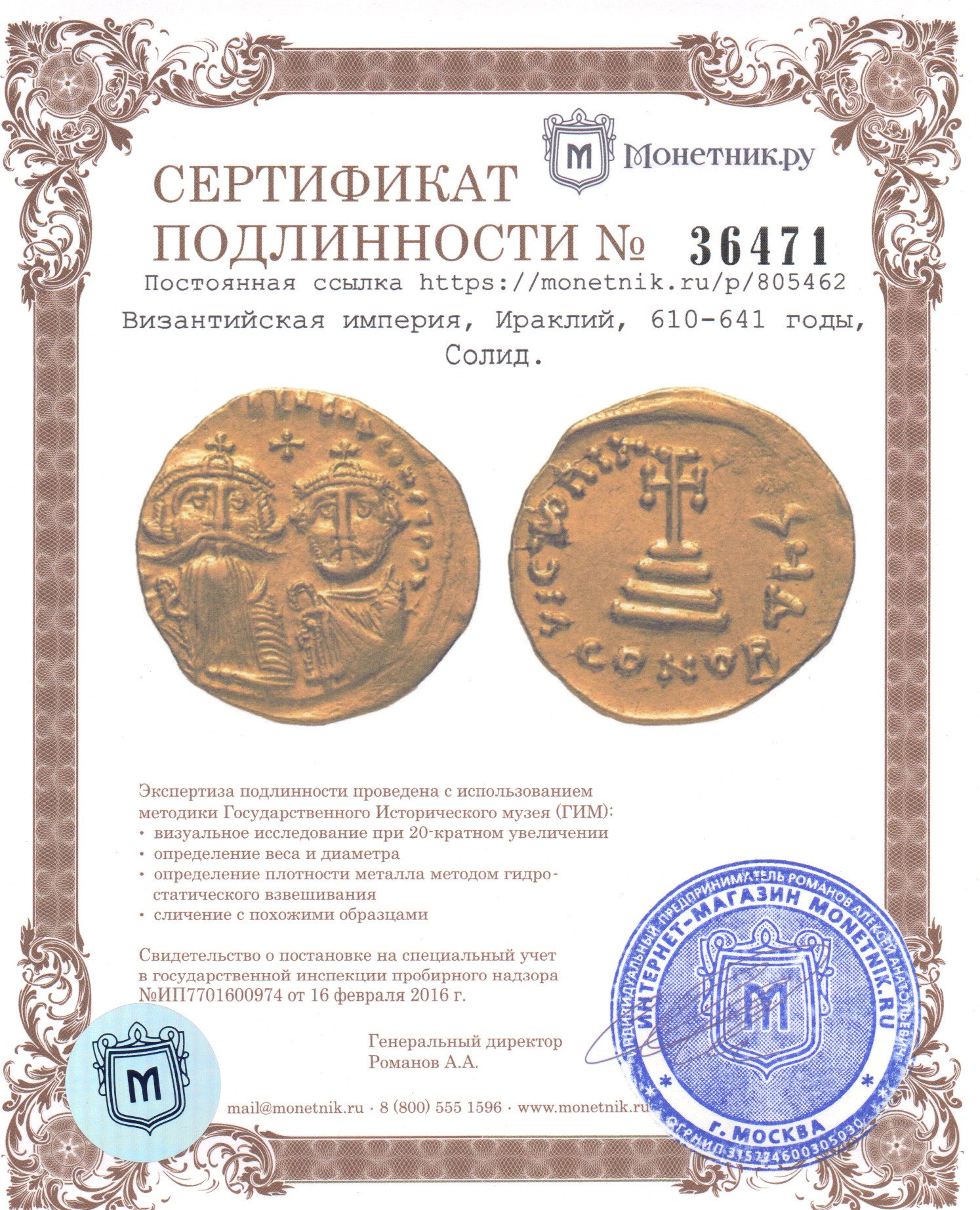 Византийская империя, Ираклий, 610-641 годы, солид.