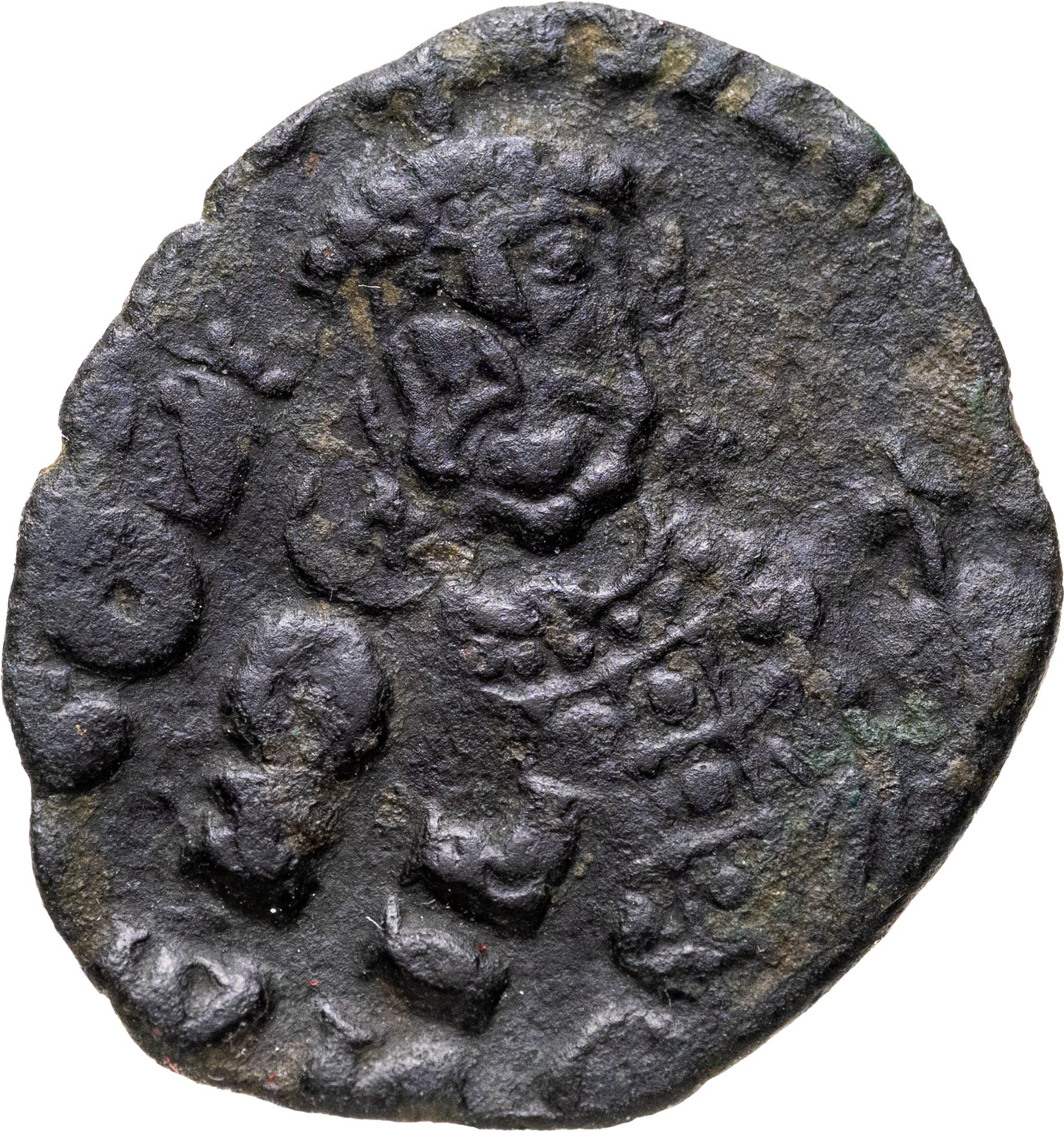 Монета перечеканена на фоллисе Константина VII Багрянородного (Sear 1761), остатки изображения которого видны и на аверсе, и на реверсе.