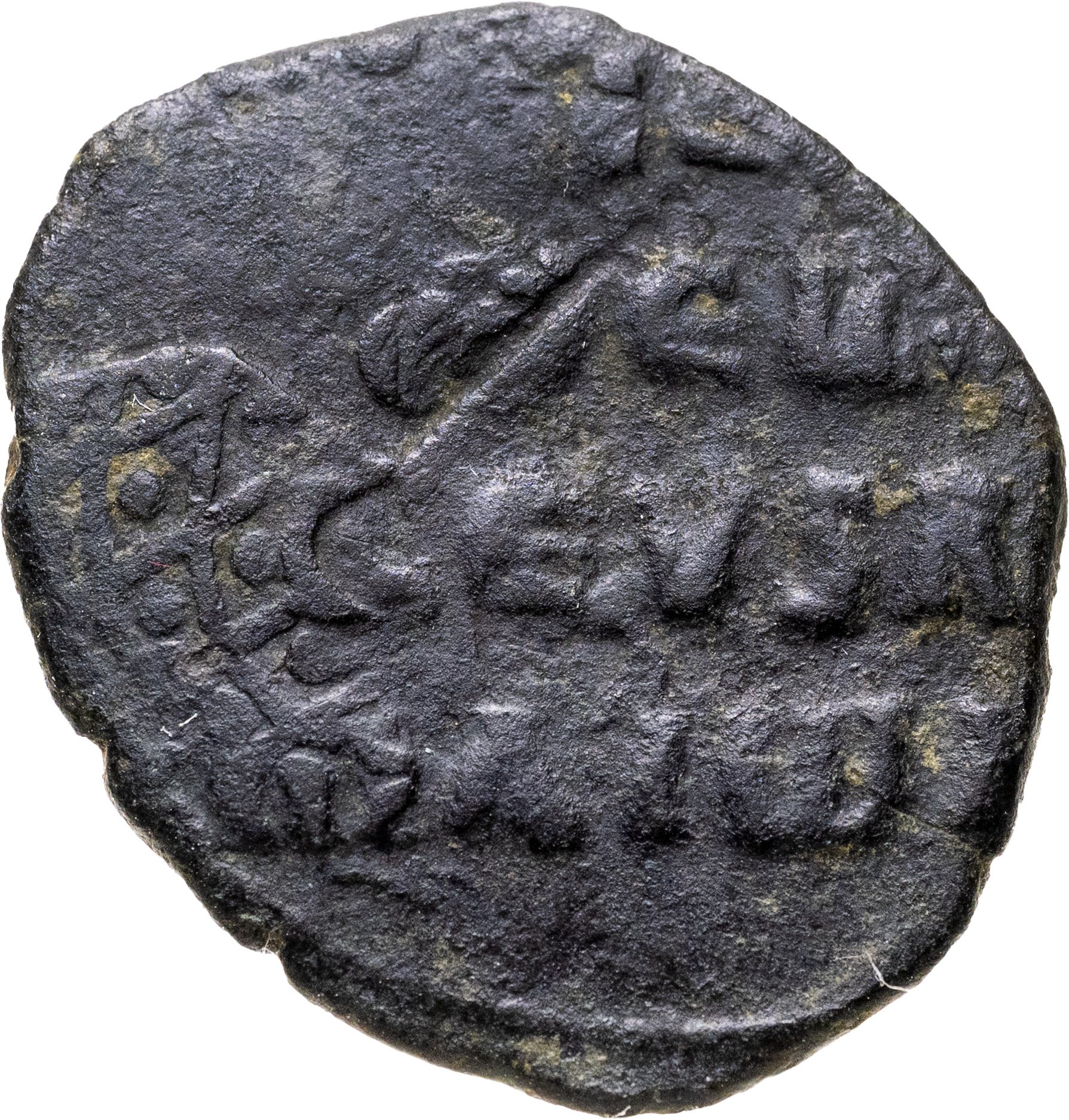 Реверс: + nICHF / En ΘEꞶ bA/SILEVS RꞶ/mAIꞶn в четыре строки.