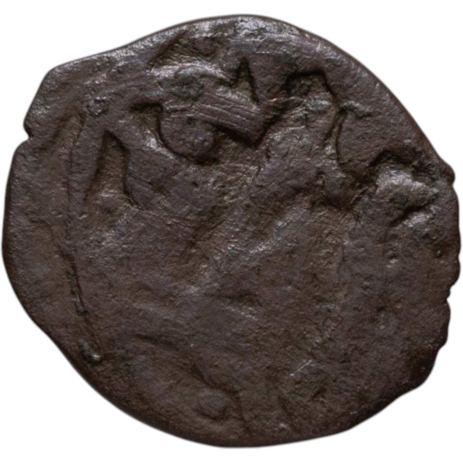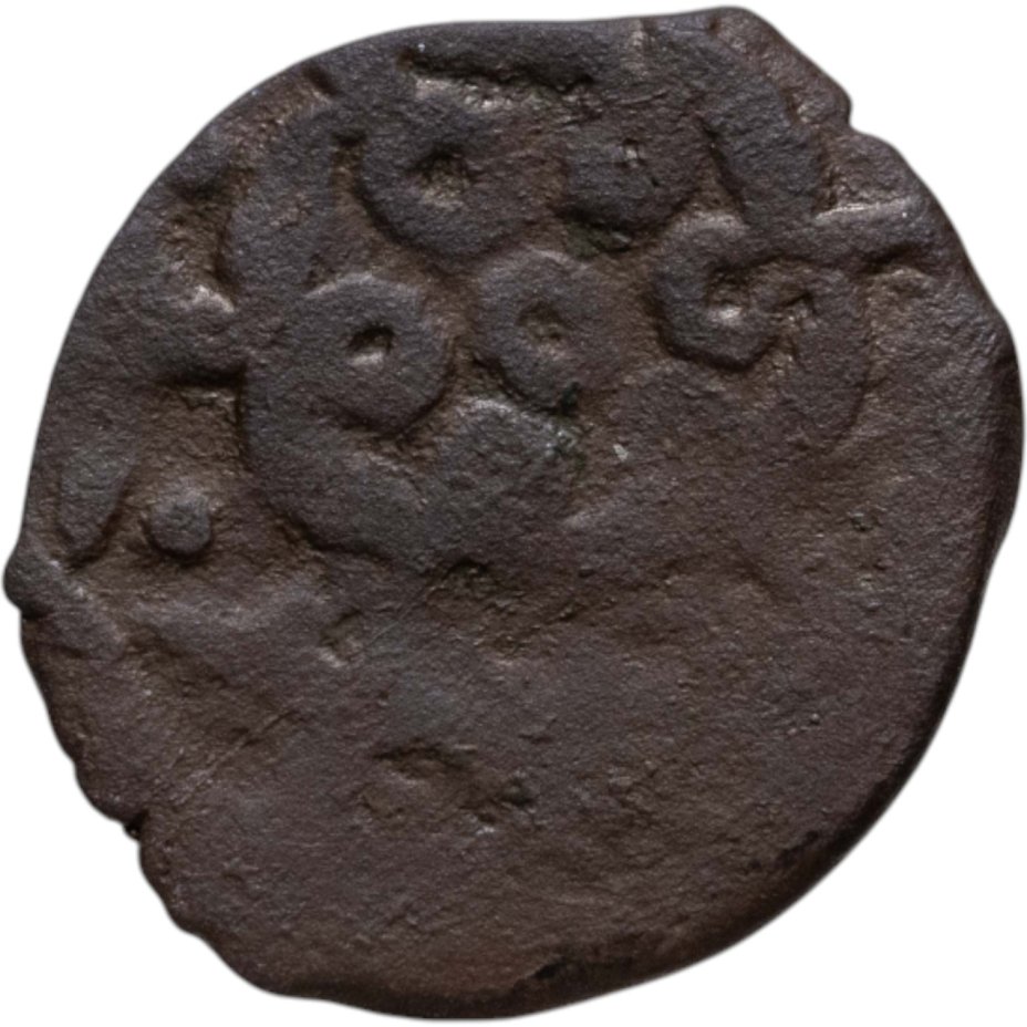 Оборотная сторона: В точечном круге фигурный 6-угольник, в котором легенда в 3 строки: Чекан Сарая / ал-Джадид / 751.