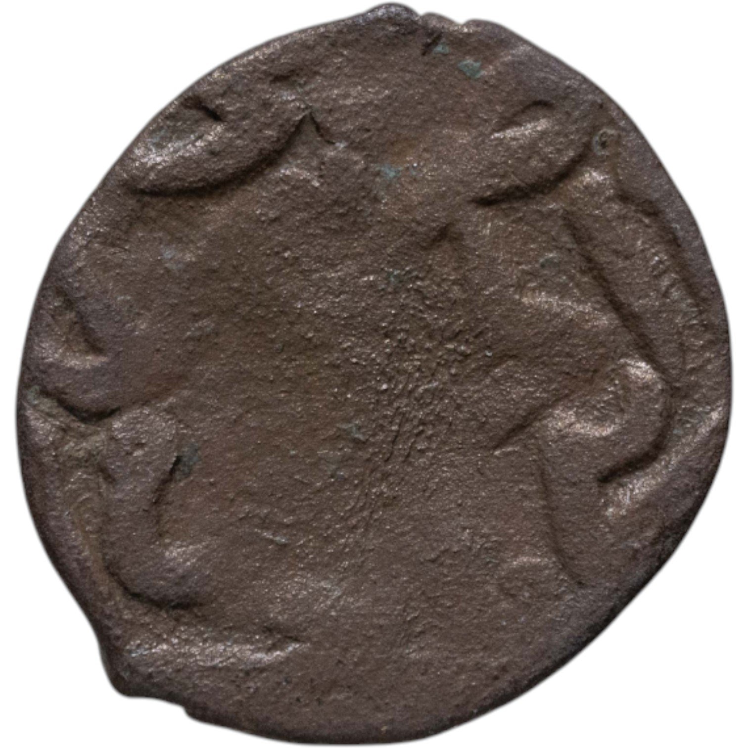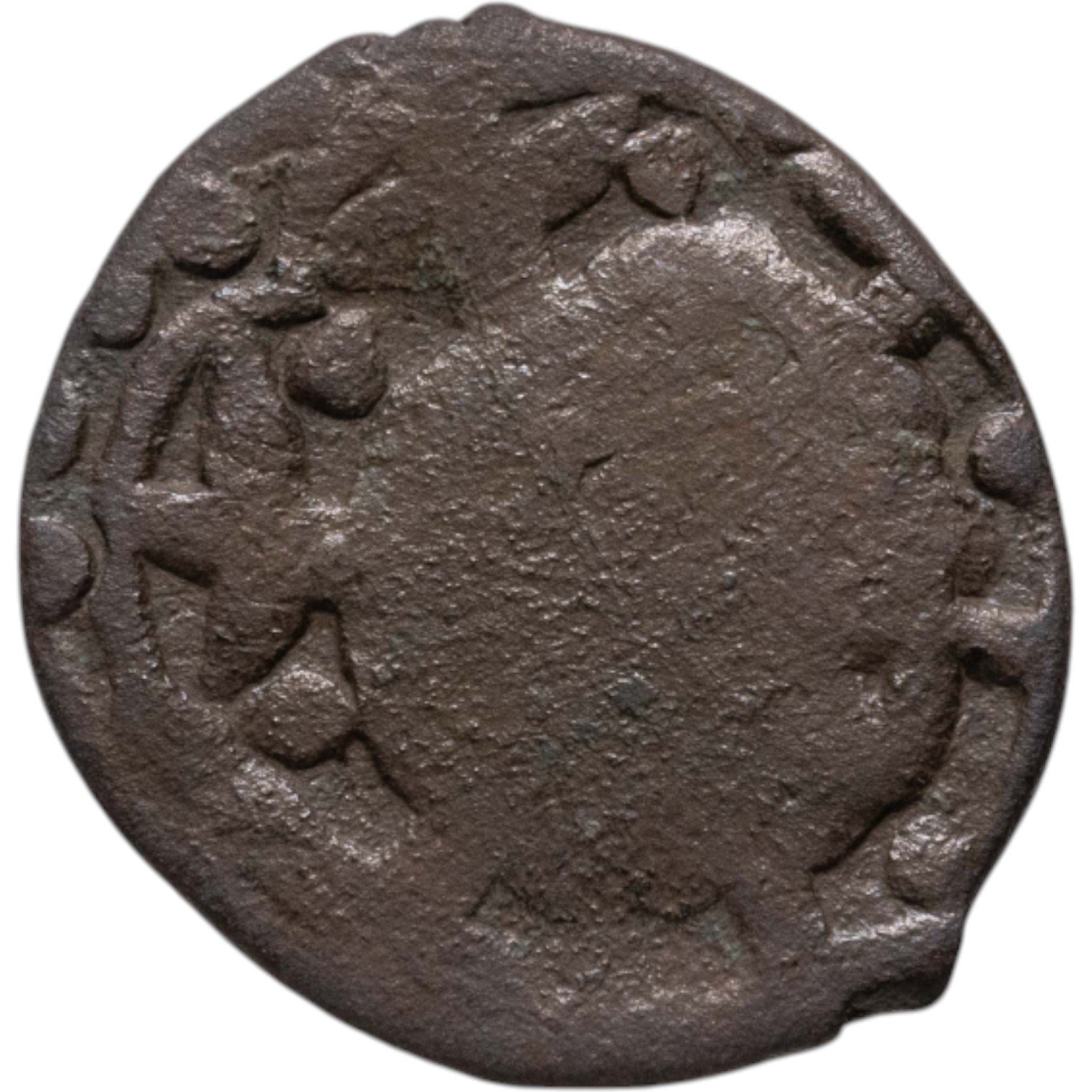 Оборотная сторона: В точечном круге фигурный 6-угольник, в котором легенда в 3 строки: Чекан Сарая / ал-Джадид / 751.