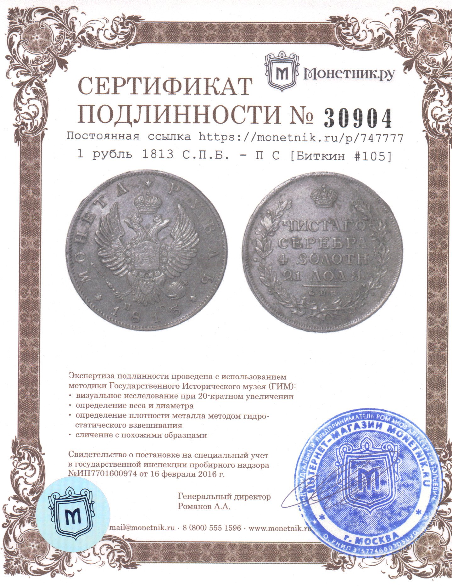 Год: 1813 С.П.Б. - П С