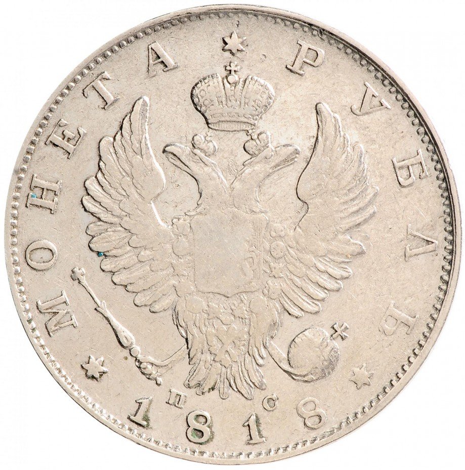 Купить 1 рубль 1818 СПБ-ПС орёл образца 1812 г., скипетр длиннее