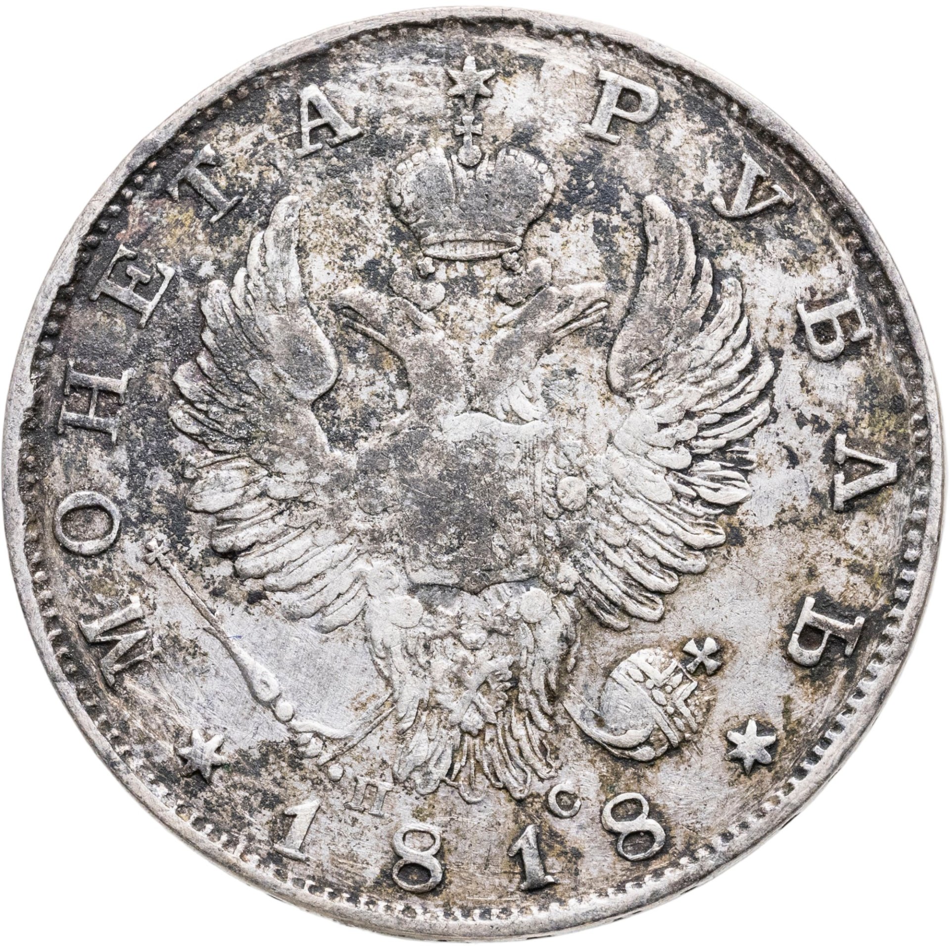 1 рубль 1818 СПБ-ПС орёл образца 1812 г., скипетр длиннее