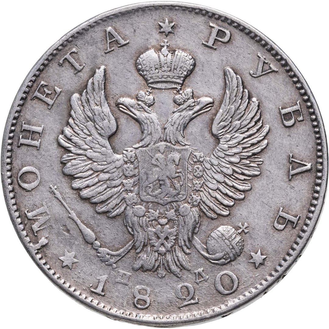В центре изображен Государственный Герб Российской империи - двуглавый орёл с поднятыми вверх распущенными крыльями. Головы которого увенчаны двумя коронами, третья, большая корона над ними. На груди орла расположен Московский герб - щит с изображением Георгия Победоносца, поражающего копьем дракона. Вокруг щита орденская цепь с орденом Св. Апостола Андрея Первозванного. В правой лапе орла – скипетр, в левой – держава. Под правой лапой – буква «П», под левой – буква «Д». Инициалы минцмейстера Павла Данилова. Слева от герба круговая надпись - «МОНЕТА», справа - «РУБЛЬ». Под инициалами — дата выпуска монеты «1820». Все три надписи разделены между собой тремя шестиконечными звёздами. По окружности канта имеются рельефные элементы, выполненные в виде зубцов.