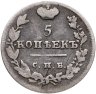 В центре указан номинал - цифра «5». Над цифрой – Корона Российской империи. Под цифрой номинала — слово "КОПЕЕК". Под словом - прямая черта, под ней - обозначение Санкт-Петербургского монетного двора «С.П.Б.». Вдоль канта, не доходя до короны, изображен венок из лавровой и дубовой ветви, которые в нижней части переплетены лентой. По окружности канта имеются рельефные элементы, выполненные в виде зубцов.