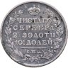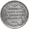 В центре надпись в четыре строки: «ЧИСТАГО»│«СЕРЕБРА»│«2 ЗОЛОТН=»│«10 1/2 ДОЛЕЙ». Над надписью - императорская корона. Под надписью - прямая черта, под ней - обозначение Санкт-Петербургского монетного двора «С.П.Б.». Вдоль канта, не доходя до короны, изображен венок из лавровой и дубовой ветви, которые в нижней части переплетены лентой. По окружности канта имеются рельефные элементы, выполненные в виде зубцов.