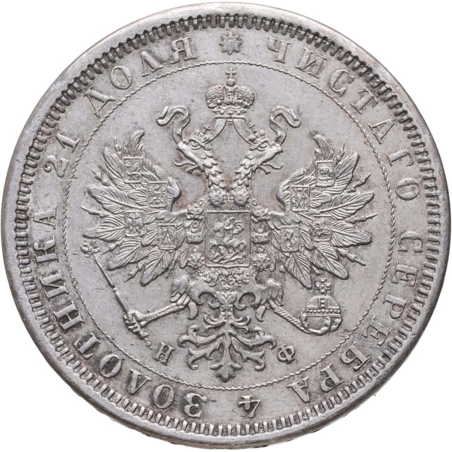 В центре изображен Малый Государственный Герб Российской империи - двуглавый орёл, головы которого увенчаны двумя коронами, третья, большая корона над ними. Все они соединены орденской лентой ордена Св. Апостола Андрея Первозванного. На груди орла расположен Московский герб, в щите изображен Георгий Победоносец с копьем поражающий дракона. Вокруг щита цепь ордена Св. Апостола Андрея Первозванного. На крыльях изображены гербы: Царства Казанского, Польского, Херсонеса Таврического, Астраханского, Сибирского, Грузинского и герб соединенных княжеств Киевского, Новгородского и Владимирского — по 4 на каждое крыло. В правой лапе орла – скипетр, в левой – держава. Под правой лапой – буква «Н», под левой – буква «Ф». Инициалы минцмейстера Николая Фоллендорфа. Центральная часть отделена от остального изображения, окружностью в виде точек. За окружностью круговая надпись: «ЧИСТОГО СЕРЕБРА 4 ЗОЛОТНИКА 21 ДОЛЯ», разделенная сверху цветочной розеткой. По окружности канта имеются рельефные элементы, выполненные в виде зубцов.