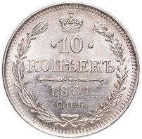 10 копеек 1861 СПБ без инициалов минцмейстера