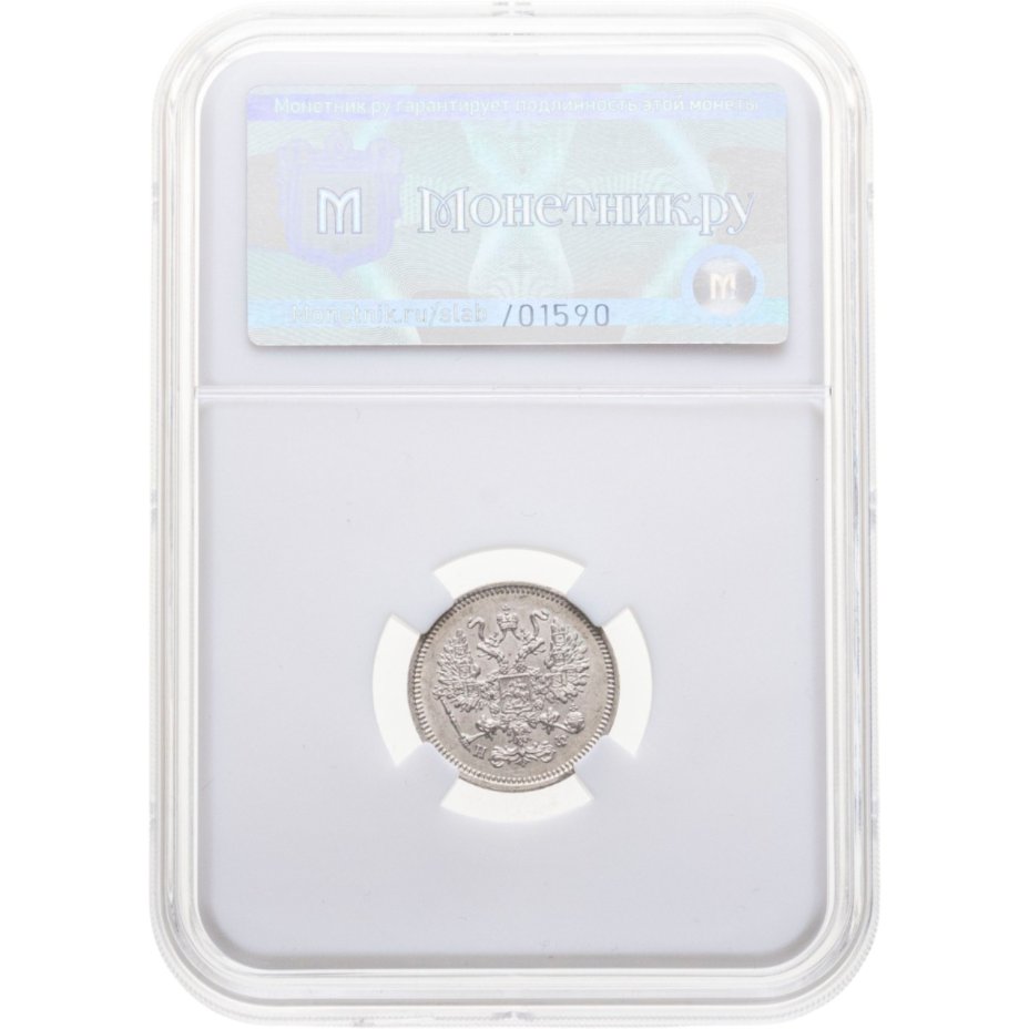 В центре изображен Малый Государственный Герб Российской империи - двуглавый орёл, головы которого увенчаны двумя коронами, третья, большая корона над ними. Все они соединены орденской лентой ордена Св. Апостола Андрея Первозванного. На груди орла расположен Московский герб, в щите изображен Георгий Победоносец с копьем поражающий дракона. Вокруг щита цепь ордена Св. Апостола Андрея Первозванного. На крыльях изображены гербы: Царства Казанского, Польского, Херсонеса Таврического, Астраханского, Сибирского, Грузинского и герб соединенных княжеств Киевского, Новгородского и Владимирского — по 4 на каждое крыло. В правой лапе орла – скипетр, в левой – держава. Под правой лапой – буква «Н», под левой – буква «Ф». Инициалы минцмейстера Николая Фоллендорфа. По окружности канта имеются рельефные элементы, выполненные в виде зубцов.