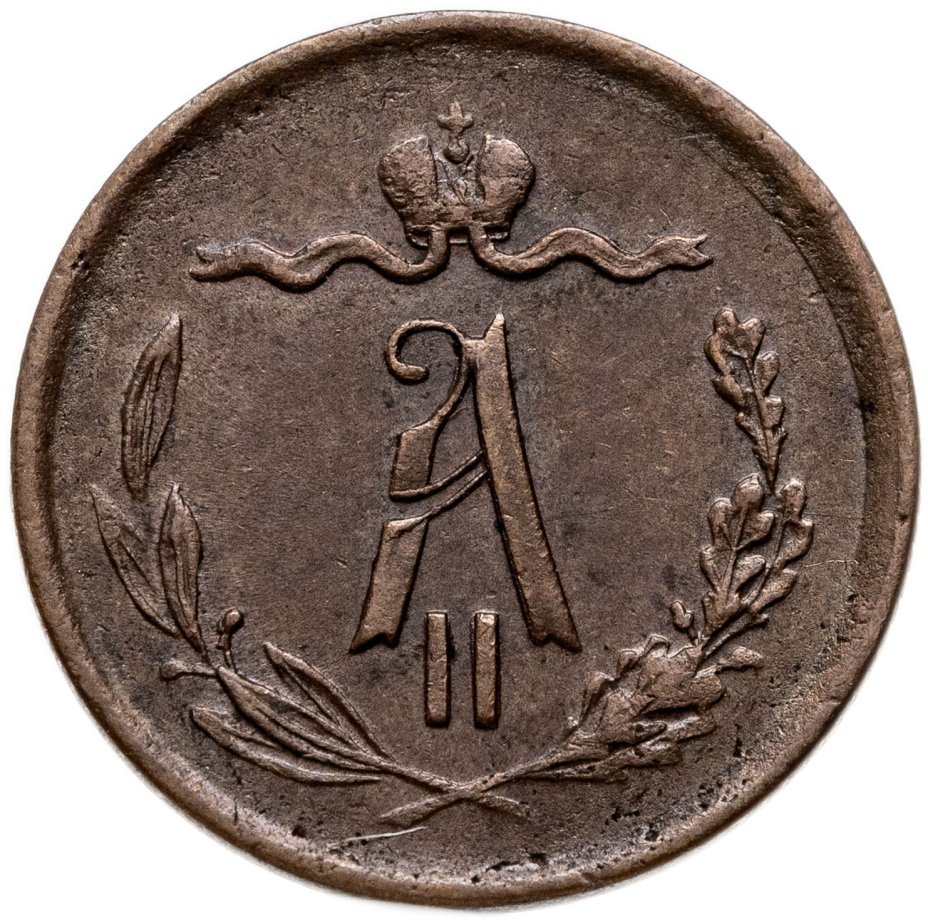 В центре вензель Александра II. Над ним Корона Российской империи с двумя развевающимися концами ленты Ордена Святого апостола Андрея Первозванного. Под вензелем, вдоль канта, две скрещенные ветви: слева лавровая, справа дубовая.