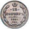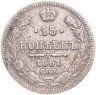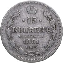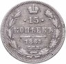 15 копеек 1861 СПБ без инициалов минцмейстера