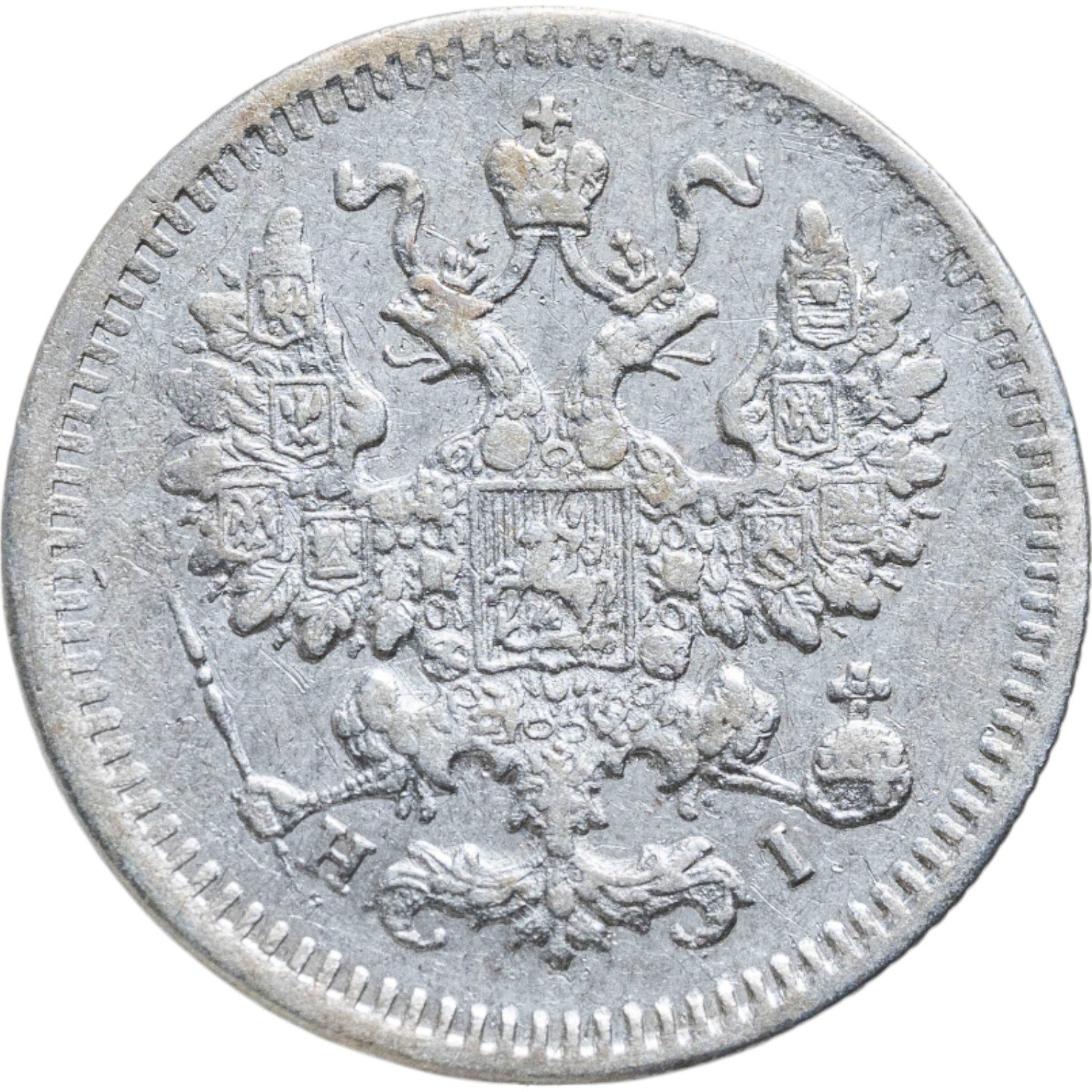 В центре изображен Малый Государственный Герб Российской империи - двуглавый орёл, головы которого увенчаны двумя коронами, третья, большая корона над ними. Все они соединены орденской лентой ордена Св. Апостола Андрея Первозванного. На груди орла расположен Московский герб - щит с изображением Георгия Победоносца, поражающего копьем дракона. Вокруг щита цепь ордена Св. Апостола Андрея Первозванного. На крыльях изображены гербы: Царства Казанского, Польского, Херсонеса Таврического, Астраханского, Сибирского, Грузинского и герб соединенных княжеств Киевского, Новгородского и Владимирского — по 4 на каждое крыло. В правой лапе орла – скипетр, в левой – держава. Под правой лапой – буква «Н», под левой – буква «I». Инициалы минцмейстера Николая Иоссы. По окружности канта имеются рельефные элементы, выполненные в виде зубцов.