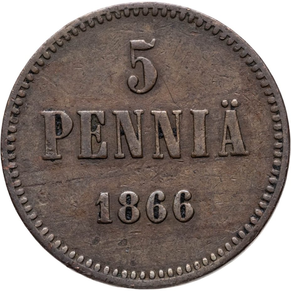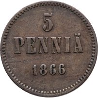 5 пенни (pennia) 1866, монета для Финляндии