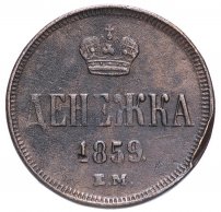 денежка 1859 ЕМ короны уже