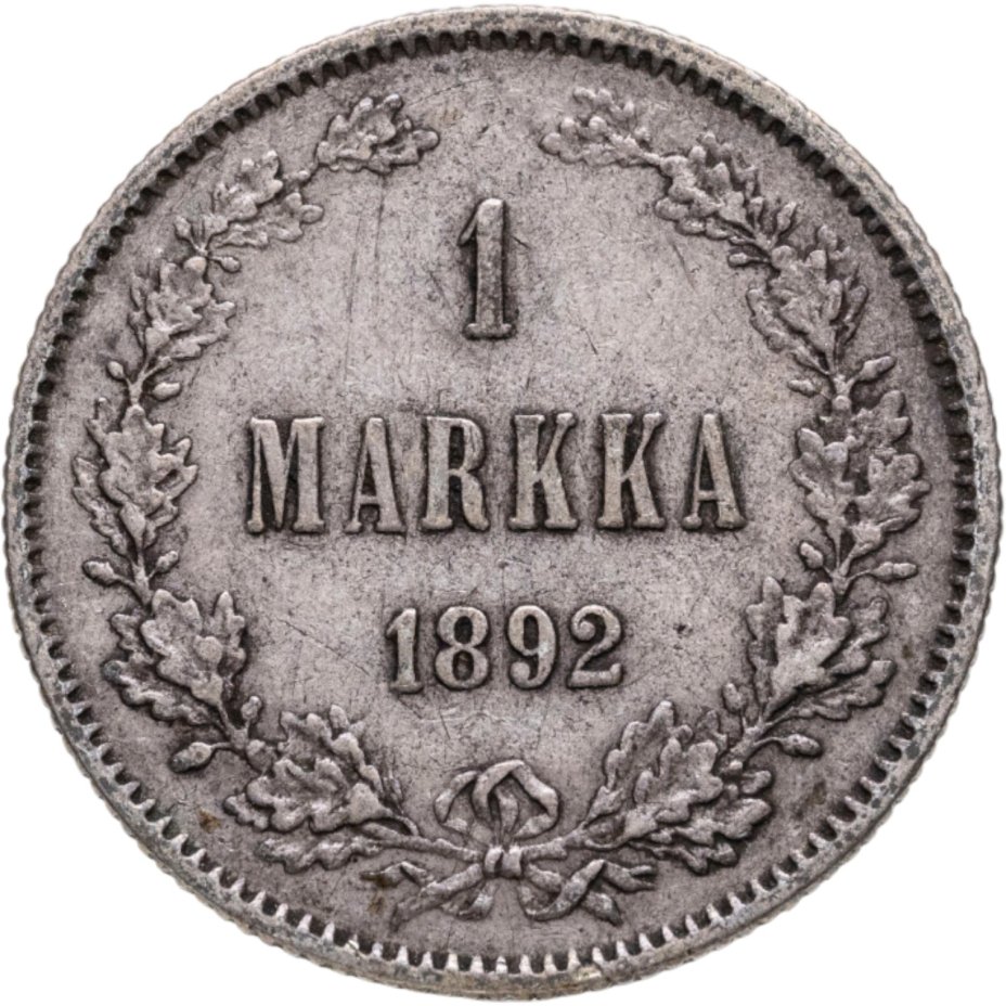 В центре - надпись в три строки: «1»│«MARKAA»│«1892». Вдоль канта изображён не замкнутый венок из двух дубовых ветвей, которые, в нижней части, перевязаны лентой на узел двойным бантом. По окружности канта имеются рельефные элементы, выполненные в виде зубцов.