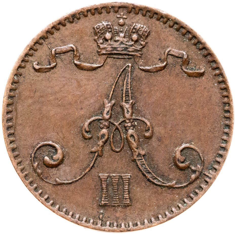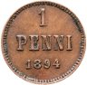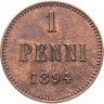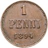 В центре надпись в три строки: «1»│«PENNI»│«1894». По окружности канта имеются рельефные элементы, выполненные в виде зубцов.