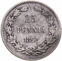 25 пенни 1890 L, монета для Финляндии