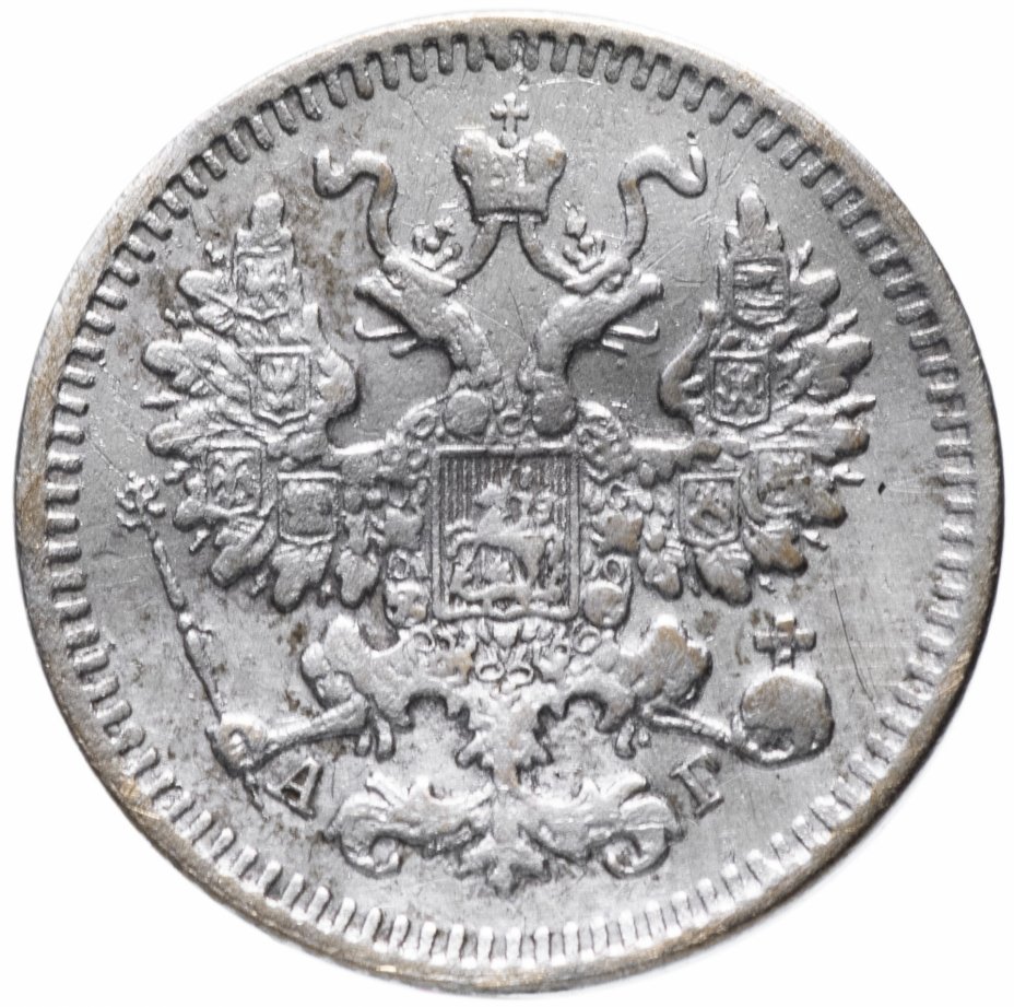 В центре изображен Малый Государственный Герб Российской империи - двуглавый орёл, головы которого увенчаны двумя коронами, третья, большая корона над ними. Все они соединены орденской лентой ордена Св. Апостола Андрея Первозванного. На груди орла расположен Московский герб, в щите изображен Георгий Победоносец с копьем поражающий дракона. Вокруг щита цепь ордена Св. Апостола Андрея Первозванного. На крыльях изображены гербы: Царства Казанского, Польского, Херсонеса Таврического, Астраханского, Сибирского, Грузинского и герб соединенных княжеств Киевского, Новгородского и Владимирского — по 4 на каждое крыло. В правой лапе орла – скипетр, в левой – держава. Под правой лапой – буква «А», под левой – буква «Г». Инициалы минцмейстера Аполлона Грасгофа. По окружности канта имеются рельефные элементы, выполненные в виде зубцов.