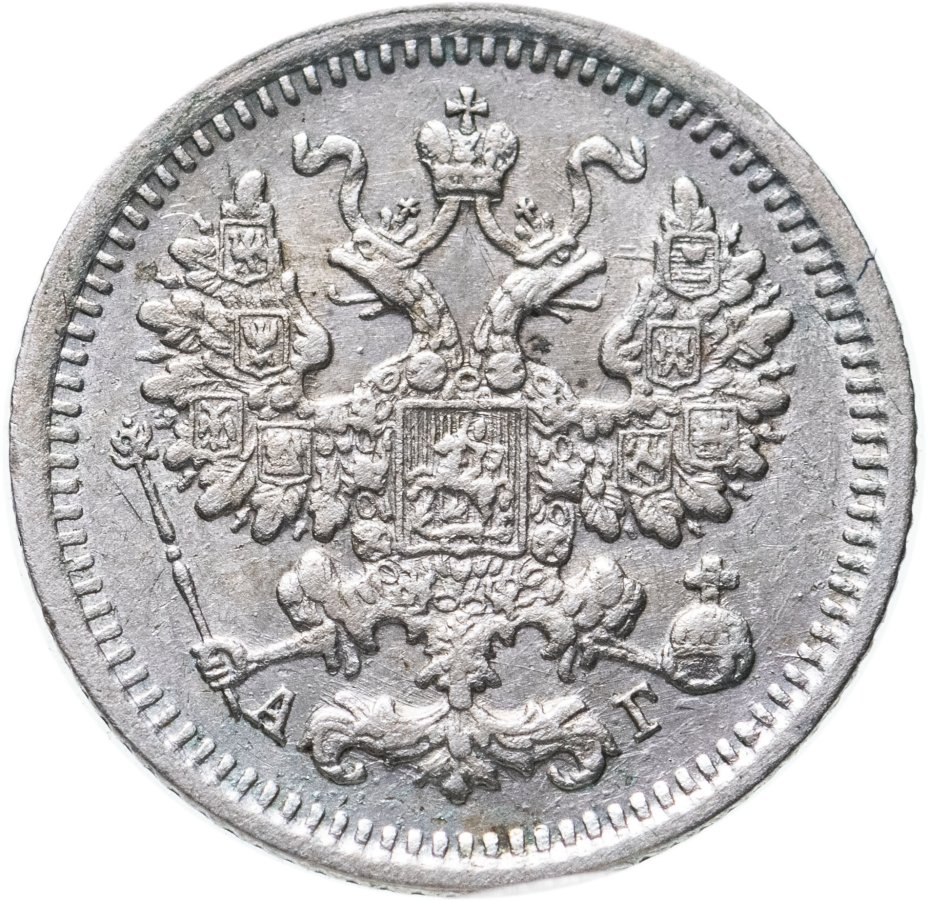 В центре изображен Малый Государственный Герб Российской империи - двуглавый орёл, головы которого увенчаны двумя коронами, третья, большая корона над ними. Все они соединены орденской лентой ордена Св. Апостола Андрея Первозванного. На груди орла расположен Московский герб, в щите изображен Георгий Победоносец с копьем поражающий дракона. Вокруг щита цепь ордена Св. Апостола Андрея Первозванного. На крыльях изображены гербы: Царства Казанского, Польского, Херсонеса Таврического, Астраханского, Сибирского, Грузинского и герб соединенных княжеств Киевского, Новгородского и Владимирского — по 4 на каждое крыло. В правой лапе орла – скипетр, в левой – держава. Под правой лапой – буква «А», под левой – буква «Г». Инициалы минцмейстера Аполлона Грасгофа. По окружности канта имеются рельефные элементы, выполненные в виде зубцов.