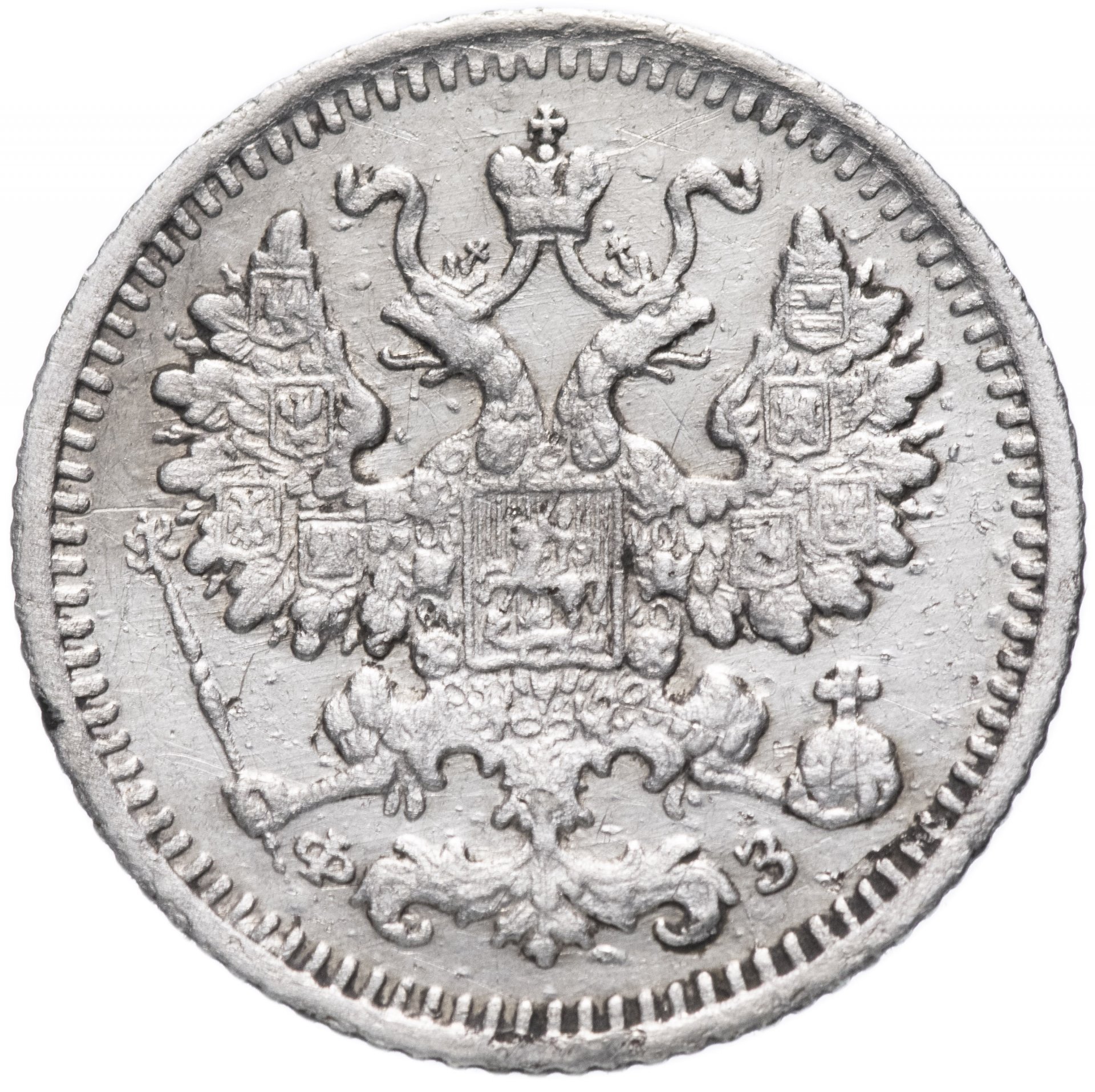 В центре изображен Малый Государственный Герб Российской империи - двуглавый орёл, головы которого увенчаны двумя коронами, третья, большая корона над ними. Все они соединены орденской лентой ордена Св. Апостола Андрея Первозванного. На груди орла расположен Московский герб, в щите изображен Георгий Победоносец с копьем поражающий дракона. Вокруг щита цепь ордена Св. Апостола Андрея Первозванного. На крыльях изображены гербы: Царства Казанского, Польского, Херсонеса Таврического, Астраханского, Сибирского, Грузинского и герб соединенных княжеств Киевского, Новгородского и Владимирского — по 4 на каждое крыло. В правой лапе орла – скипетр, в левой – держава. Под правой лапой – буква «Ф», под левой – буква «З». Инициалы минцмейстера Феликса Залемана. По окружности канта имеются рельефные элементы, выполненные в виде зубцов.