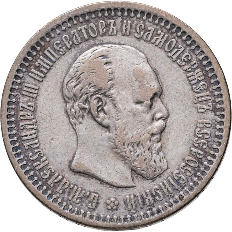 В центре профильный портрет вправо императора Александра III. Вокруг портрета надпись: «Б.М. АЛЕКСАНДРЪ III ИМПЕРАТОРЪ И САМОДЕРЖЕЦЪ ВСЕРОССIЙСКIЙ», разделенная внизу, под обрезом шеи, цветочной розеткой. По окружности канта имеются рельефные элементы, выполненные в виде зубцов.