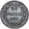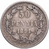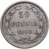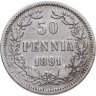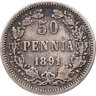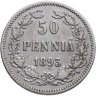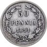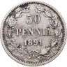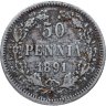 В центре - надпись в три строки: «50»│«PENNIÄ»│«1891». Вдоль канта изображён не замкнутый венок из двух дубовых ветвей, которые, в нижней части, перевязаны лентой на узел двойным бантом. По окружности канта имеются рельефные элементы, выполненные в виде зубцов.