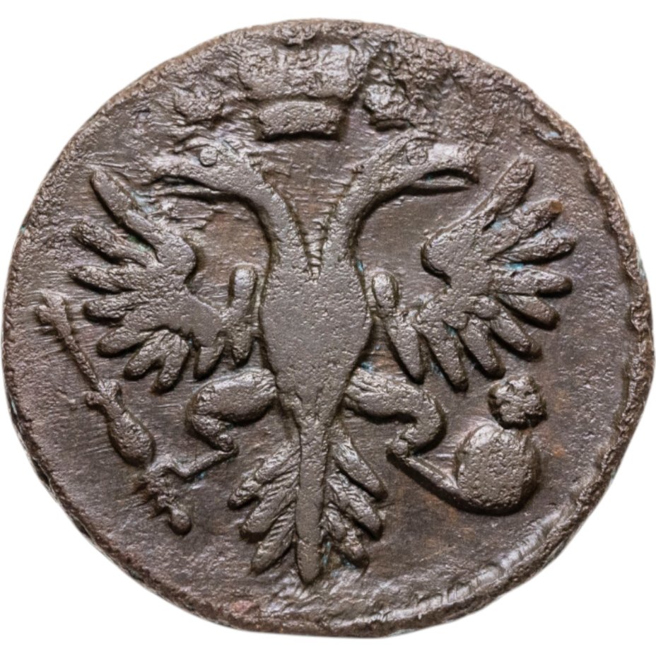 В центре изображён картуш украшенный виньетками, по обеим сторонам две лавровые ветви, сверху - цветочная розетка. Под картушем - две перекрещенные пальмовые ветви с обвязкой (бантом). В картуше надпись в три строки, в которой указан номинал и год выпуска: «ДЕ»│«НГА»│«1731». Между номиналом и годом выпуска одна прямая черта.