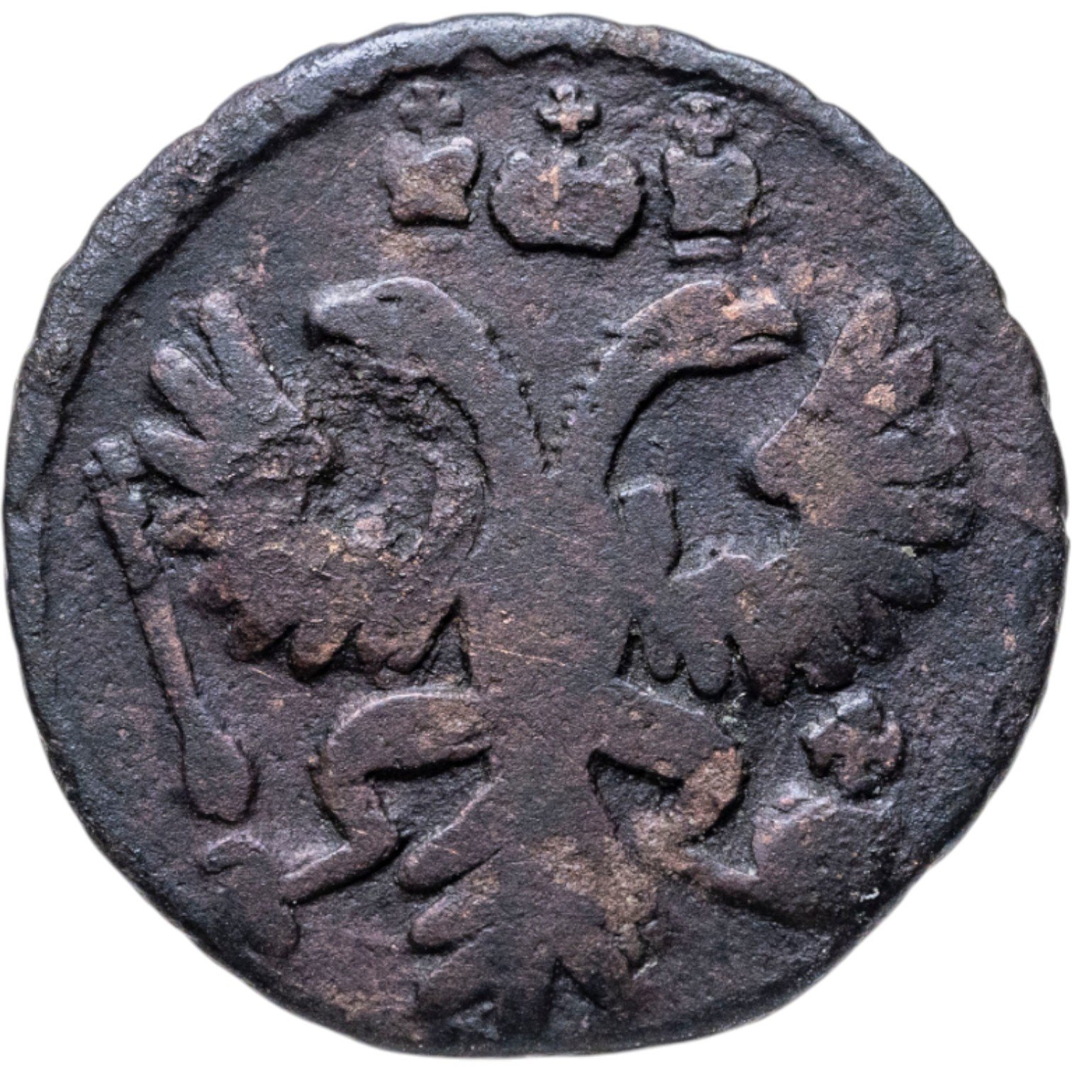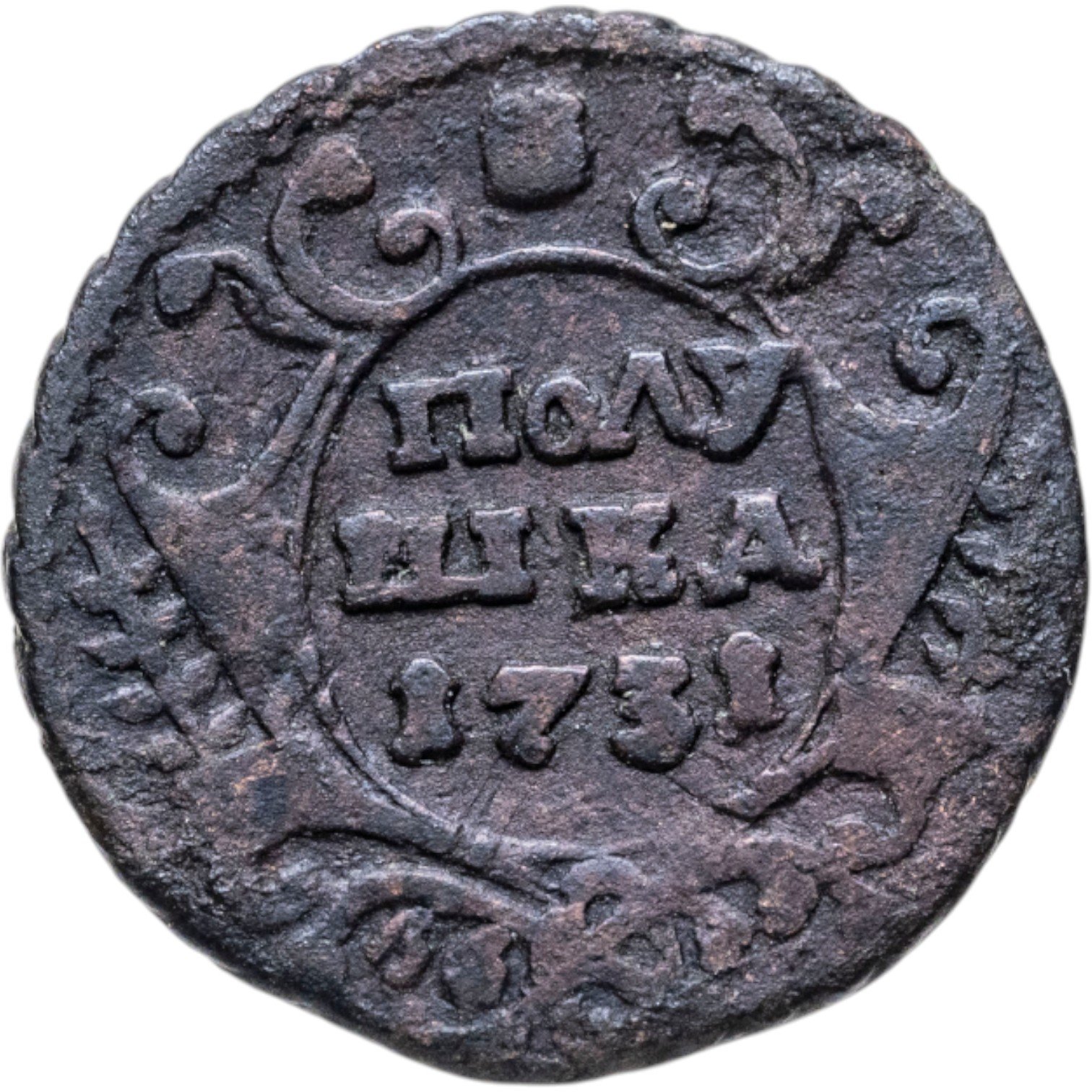 В центре изображён картуш украшенный виньетками, по обеим сторонам две лавровые ветви, сверху - цветочная розетка. Под картушем - две перекрещенные пальмовые ветви с обвязкой (бантом). В картуше надпись в три строки, в которой указан номинал и год выпуска: «ПОЛУ»│«ШКА»│«1731».