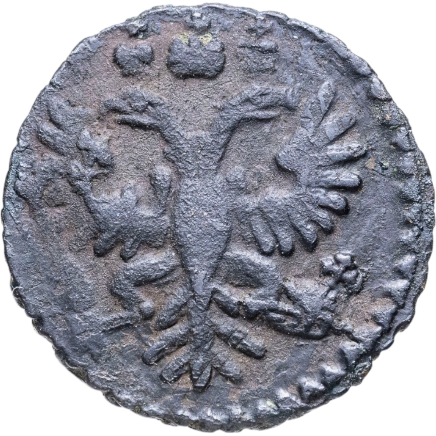 В центре изображён картуш украшенный виньетками, по обеим сторонам две лавровые ветви, сверху - цветочная розетка. Под картушем - две перекрещенные пальмовые ветви с обвязкой (бантом). В картуше надпись в три строки, в которой указан номинал и год выпуска: «ПОЛУ»│«ШКА»│«1731».