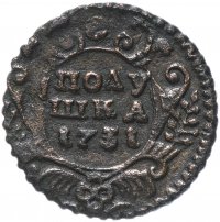 полушка 1731 ( перечекан с "крестовой" копейки Петра.)
