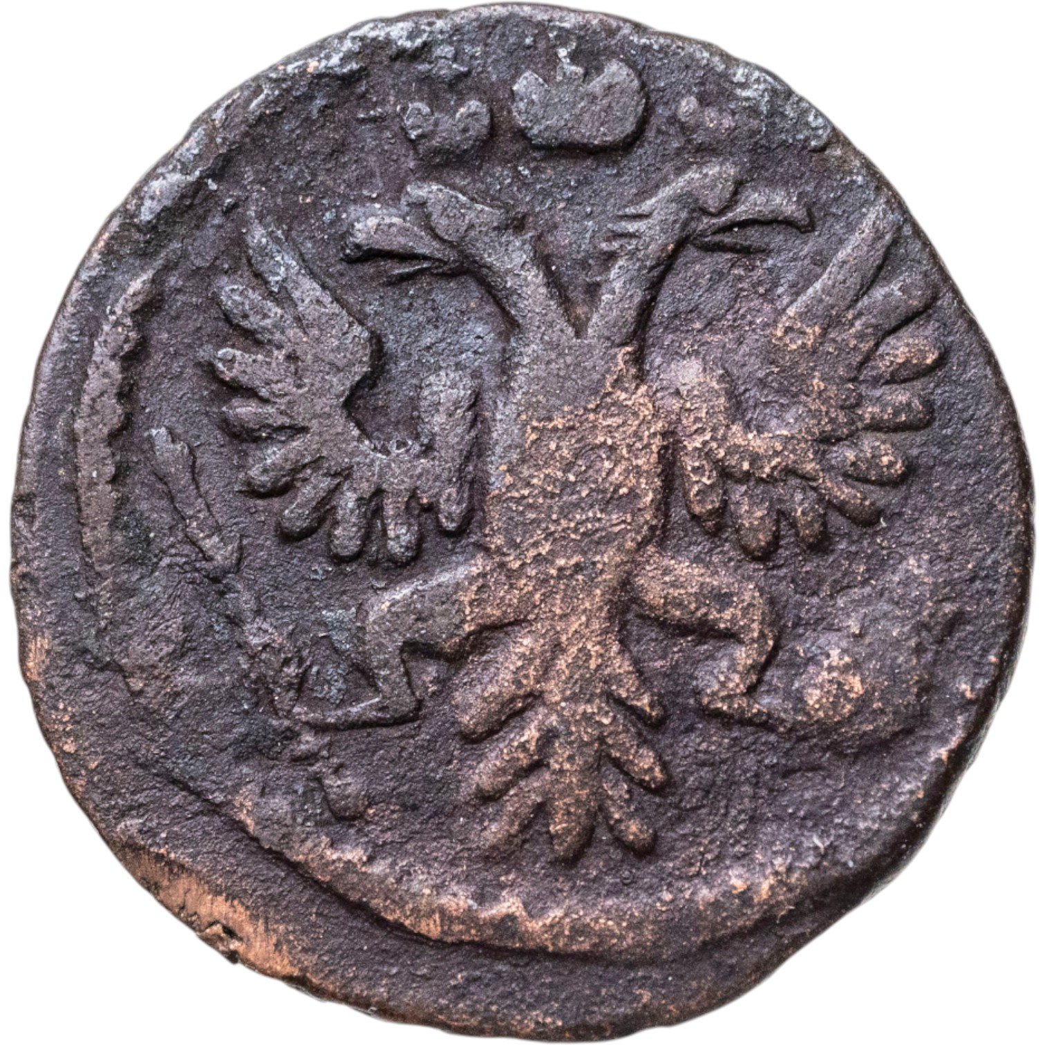 В центре изображён картуш украшенный виньетками, по обеим сторонам две лавровые ветви, сверху - цветочная розетка. Под картушем - две перекрещенные пальмовые ветви с обвязкой (бантом). В картуше надпись в три строки, в которой указан номинал и год выпуска: «ПОЛУ»│«ШКА»│«1734».