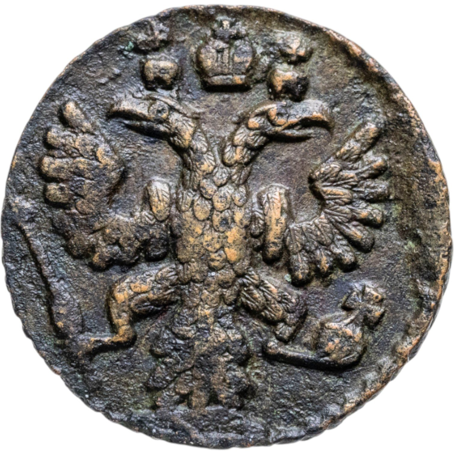 В центре изображён картуш украшенный виньетками, по обеим сторонам две лавровые ветви, сверху - цветочная розетка. Под картушем - две перекрещенные пальмовые ветви с обвязкой (бантом). В картуше надпись в три строки, в которой указан номинал и год выпуска: «ПОЛУ»│«ШКА»│«1735».