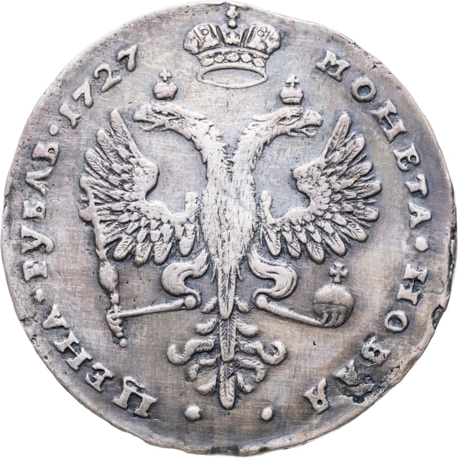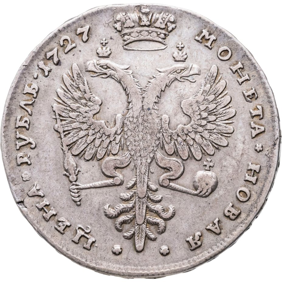 1 рубль 1727 Екатерина, московский тип, портрет вправо, под хвостом орла две звезды