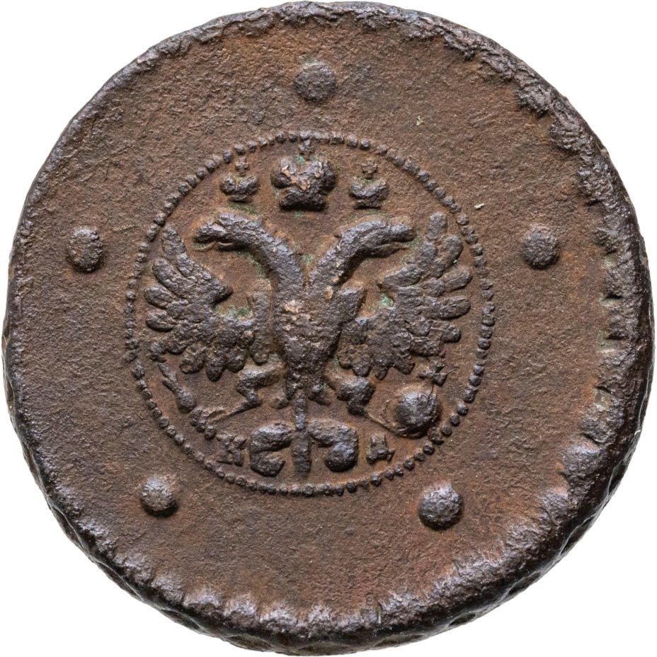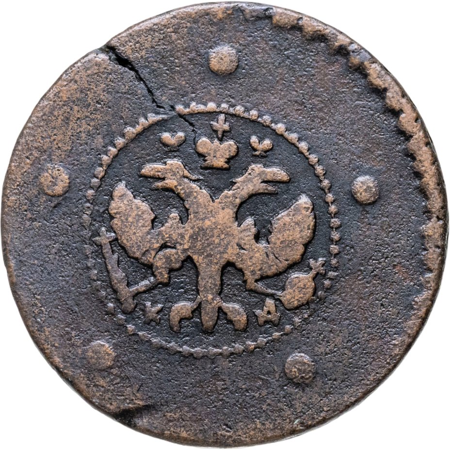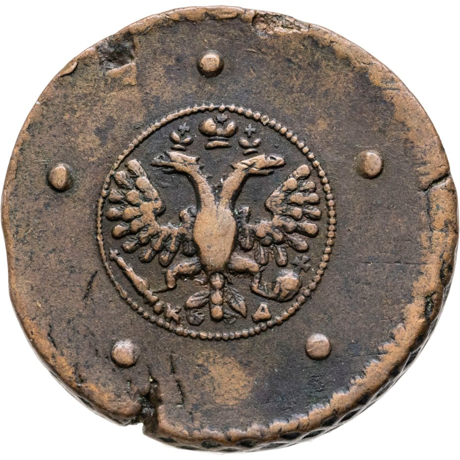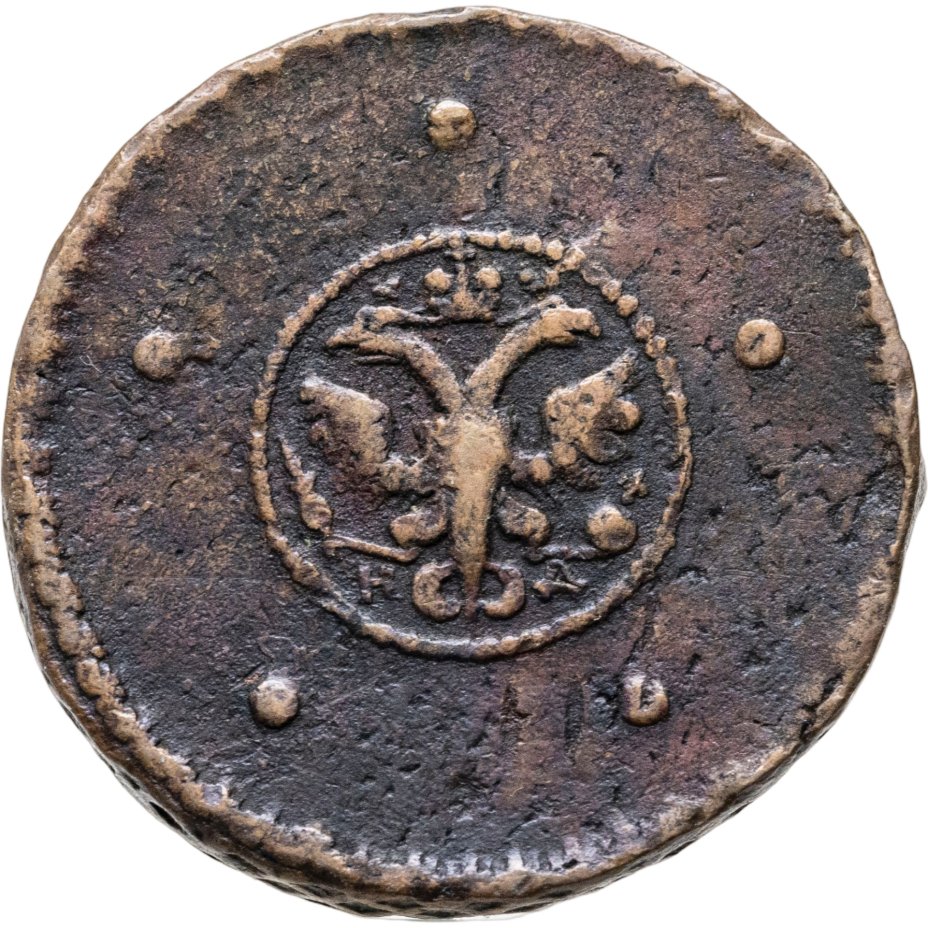 5 копеек 1727 КД ПѦТЬ КОПѢѦКЬ, одна из точек над короной