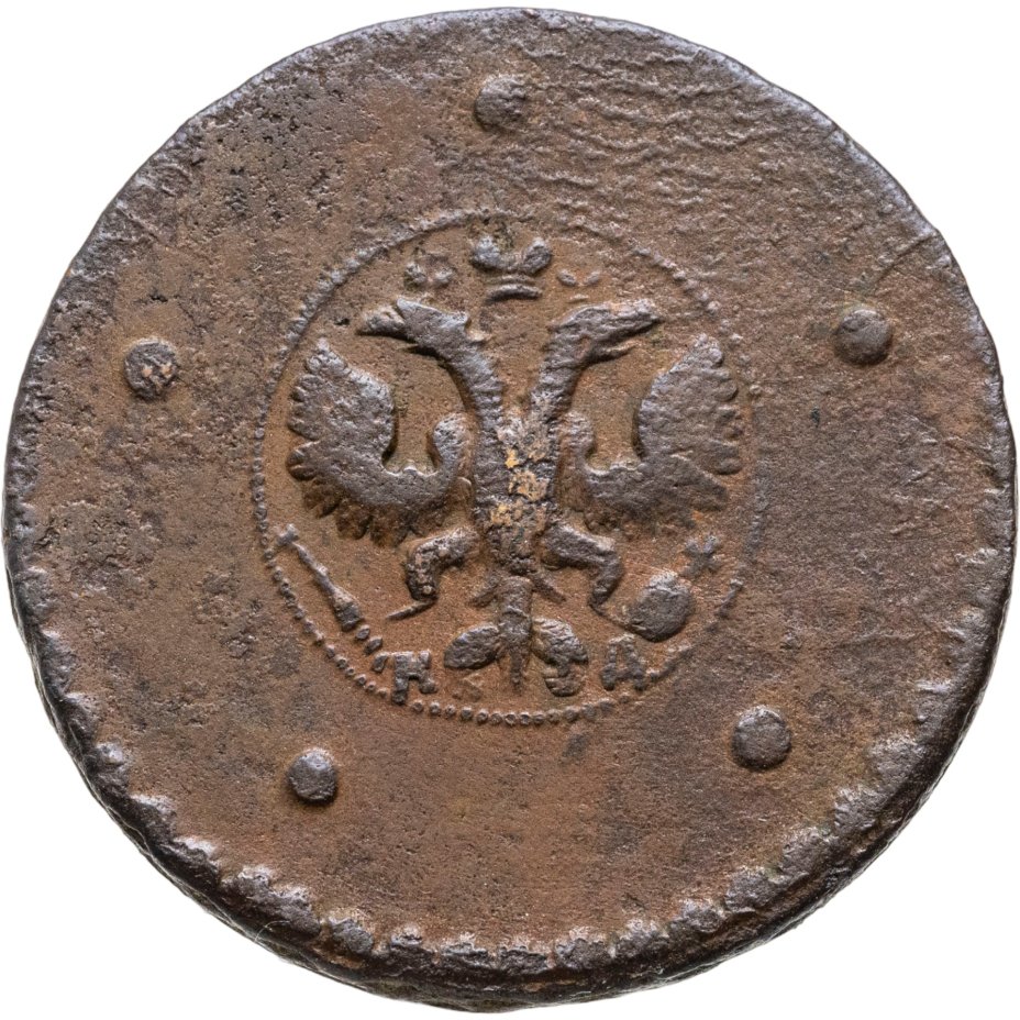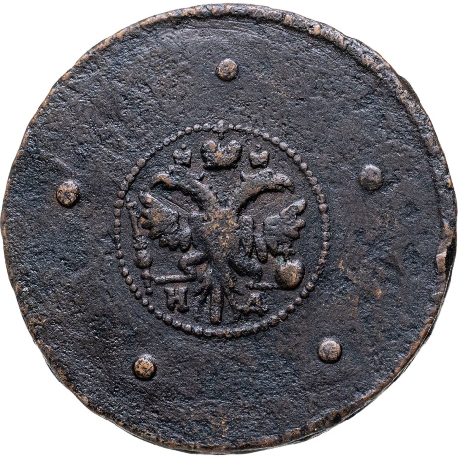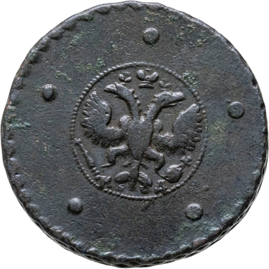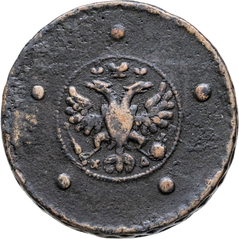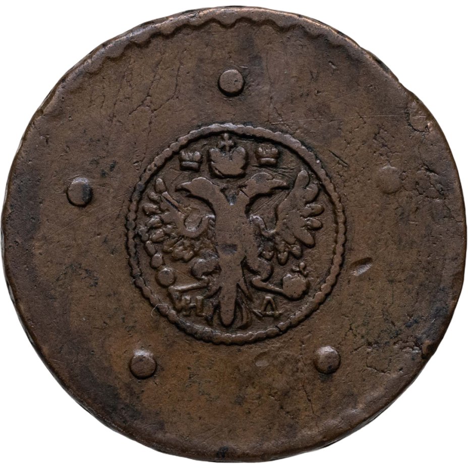 5 копеек 1727 КД ПѦТЬ КОПѢѦКЬ, одна из точек над короной