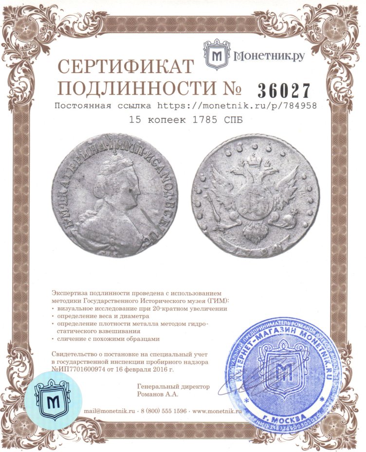 - Разновидность: орёл 1770-1777, нового образца