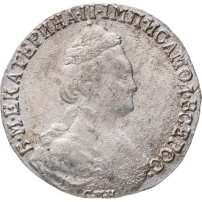 В центре профильный портрет вправо императрицы Екатерины II. Вокруг портрета круговая надпись: «Б•М•ЕКАТЕРИНА•II•IМП•ИСАМОД•ВСЕРОС•». Под портретом буквы «С П Б», обозначение Санкт-Петербургского монетного двора.