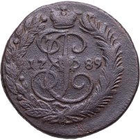 В центре изображён вензель Екатерины II. Над вензелем - императорская корона. По обеим сторонам от вензеля цифры даты выпуска монеты: слева - «17», справа - «89» (1789 год). Вокруг центрального изображения, вдоль канта, изображён венок из лавровой и пальмовой ветвей, которые, в нижней части, перевязаны лентой на узел бантом.