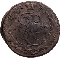 В центре изображён вензель Екатерины II. Над вензелем - императорская корона. По обеим сторонам от вензеля цифры даты выпуска монеты: слева - «17», справа - «70» (1770 год). Вокруг центрального изображения, вдоль канта, изображён венок из лавровой и пальмовой ветвей, которые, в нижней части, перевязаны лентой на узел бантом.