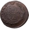В центре изображён вензель Екатерины II. Над вензелем - императорская корона. По обеим сторонам от вензеля цифры даты выпуска монеты: слева - «17», справа - «71» (1771 год). Вокруг центрального изображения, вдоль канта, изображён венок из лавровой и пальмовой ветвей, которые, в нижней части, перевязаны лентой на узел бантом.