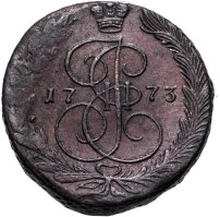 В центре изображён вензель Екатерины II. Над вензелем - императорская корона. По обеим сторонам от вензеля цифры даты выпуска монеты: слева - «17», справа - «73» (1773 год). Вокруг центрального изображения, вдоль канта, изображён венок из лавровой и пальмовой ветвей, которые, в нижней части, перевязаны лентой на узел бантом.