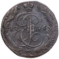 В центре изображён вензель Екатерины II. Над вензелем - императорская корона. По обеим сторонам от вензеля цифры даты выпуска монеты: слева - «17», справа - «76» (1776 год). Вокруг центрального изображения, вдоль канта, изображён венок из лавровой и пальмовой ветвей, которые, в нижней части, перевязаны лентой на узел бантом.