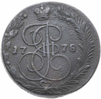 В центре изображён вензель Екатерины II. Над вензелем - императорская корона. По обеим сторонам от вензеля цифры даты выпуска монеты: слева - «17», справа - «78» (1778 год). Вокруг центрального изображения, вдоль канта, изображён венок из лавровой и пальмовой ветвей, которые, в нижней части, перевязаны лентой на узел бантом.